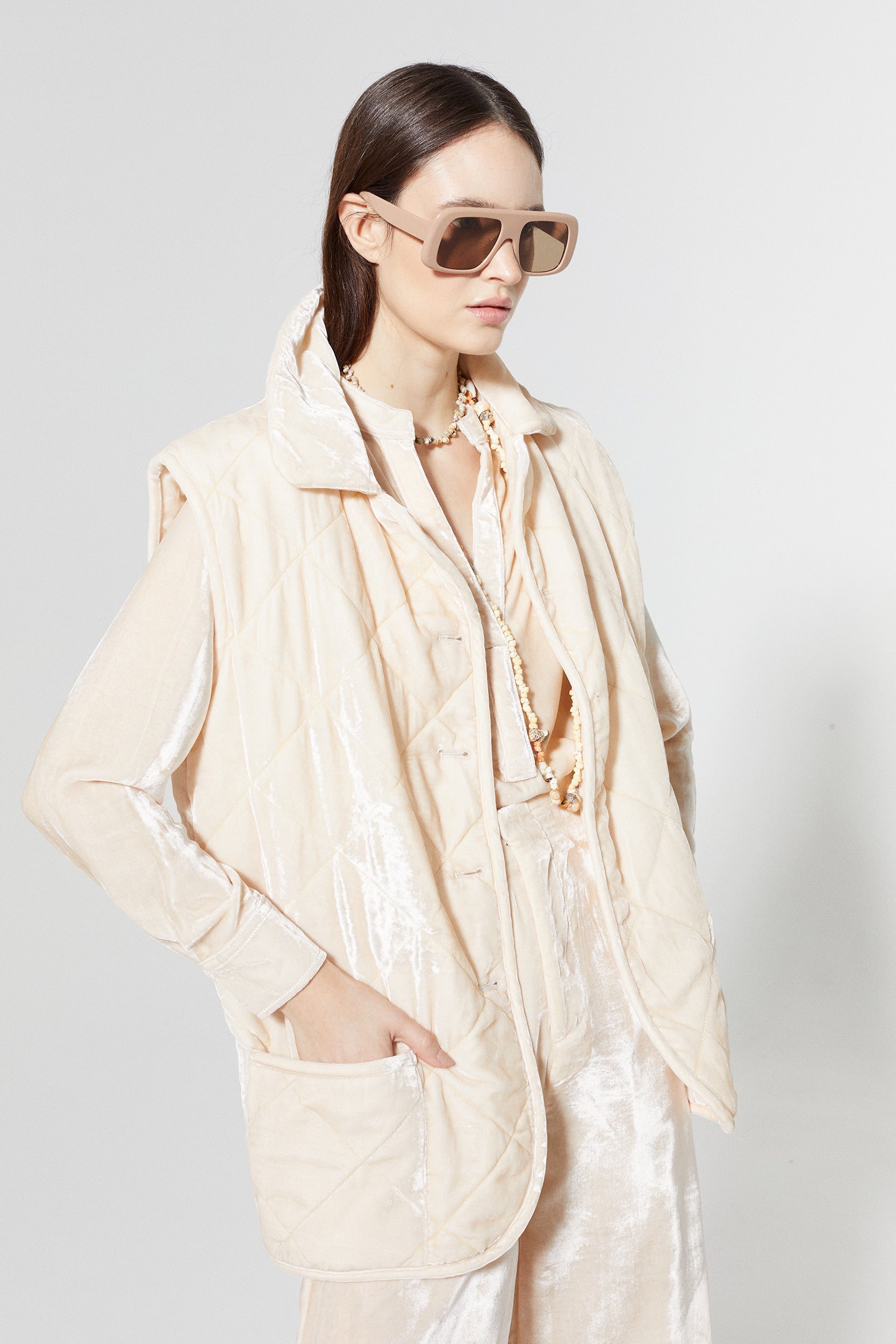 We are in love with this one. Perfect for a layered outfit, our oversized Alice Vest is made with pure silk velvet which elevates this style while adding a rich texture. The quilting makes it