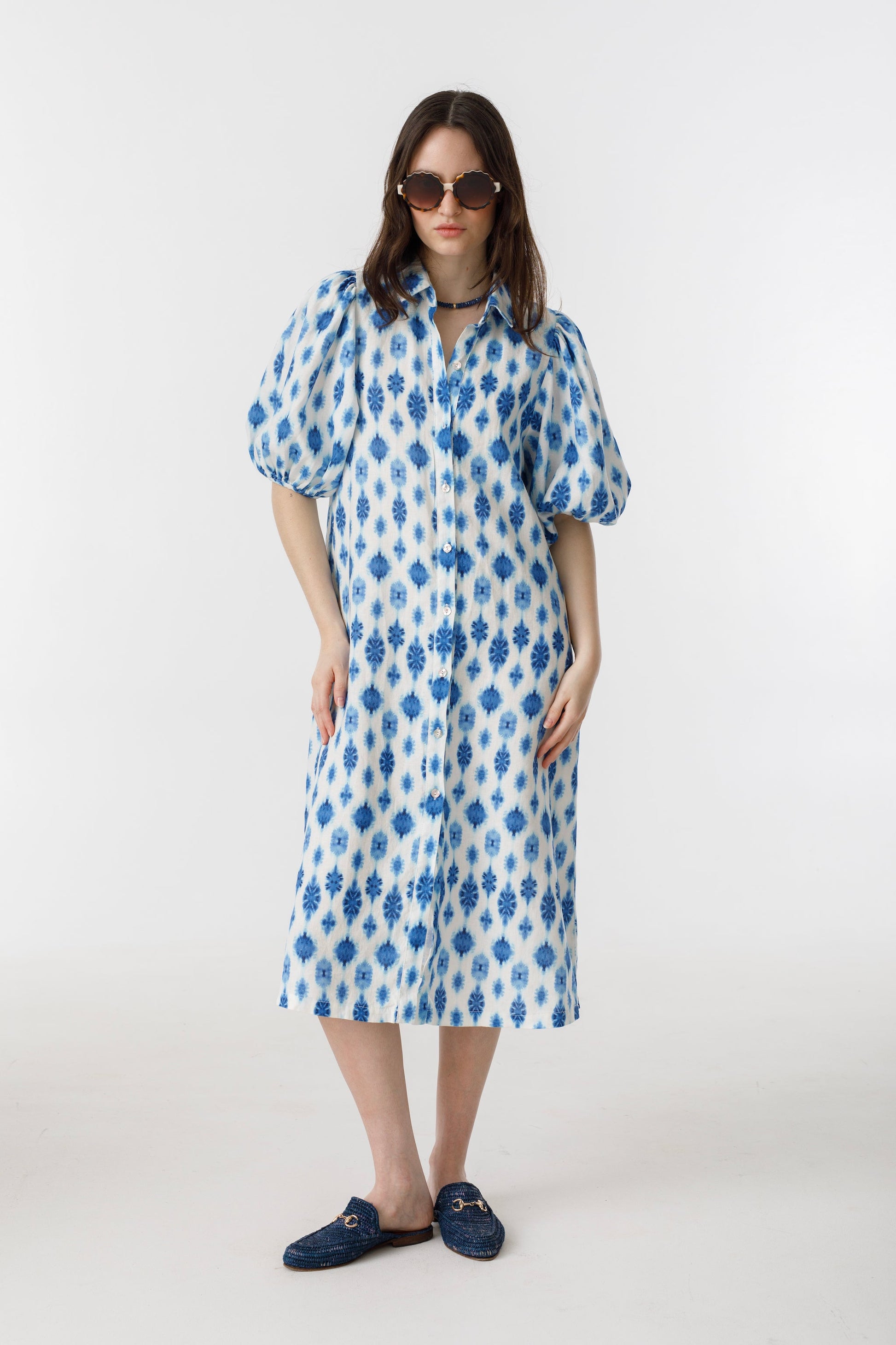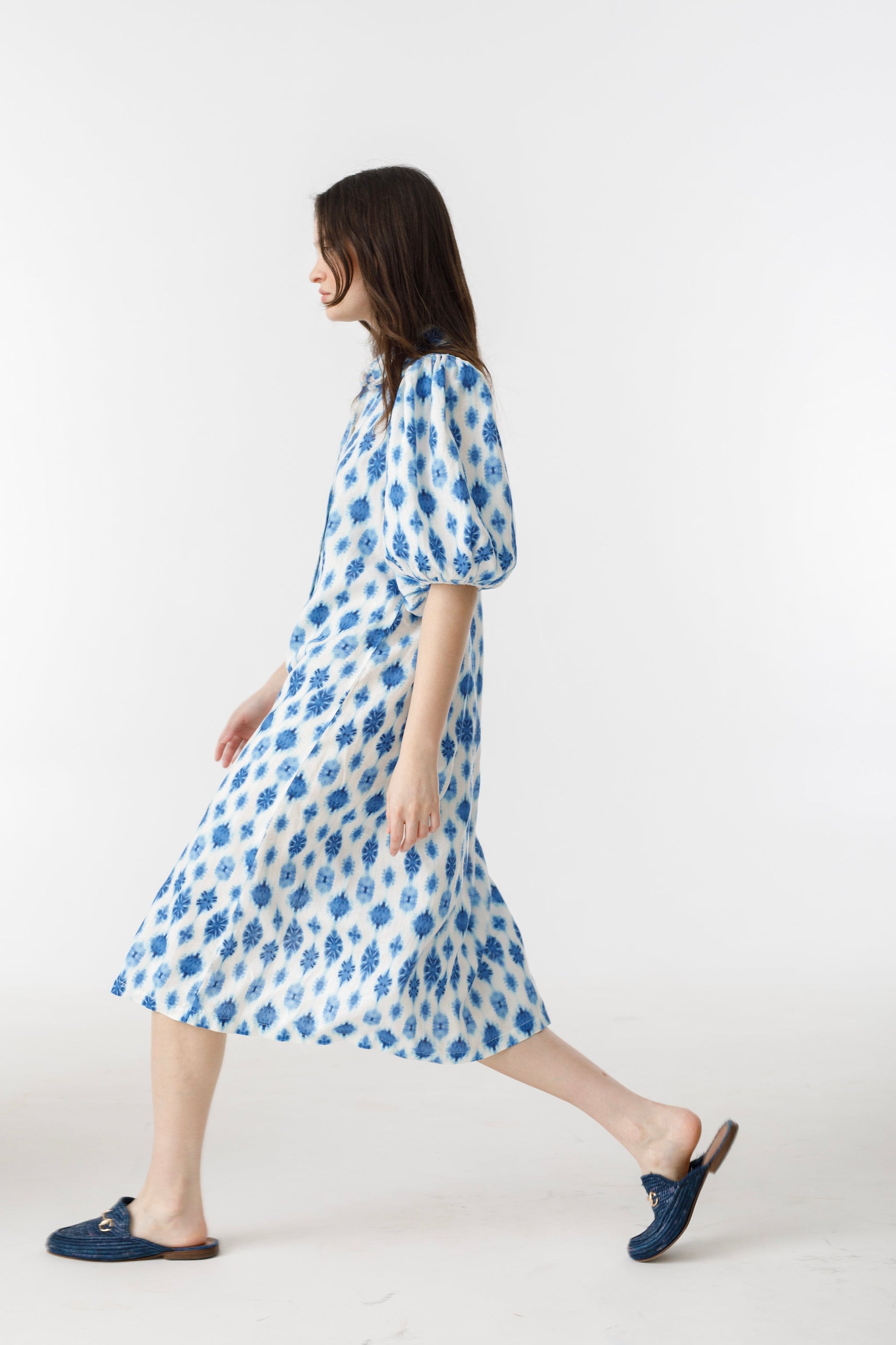 If you're seeking a feminine and comfortable dress, without a doubt we would recommend our Angel Dress. Crafted with our beloved 100% organic linen, it's pre-washed and softened for effortless care and a lovely drape. This midi-length linen dress has romantic puffed sleeves up to the elbow, a classic collar and shell buttons.