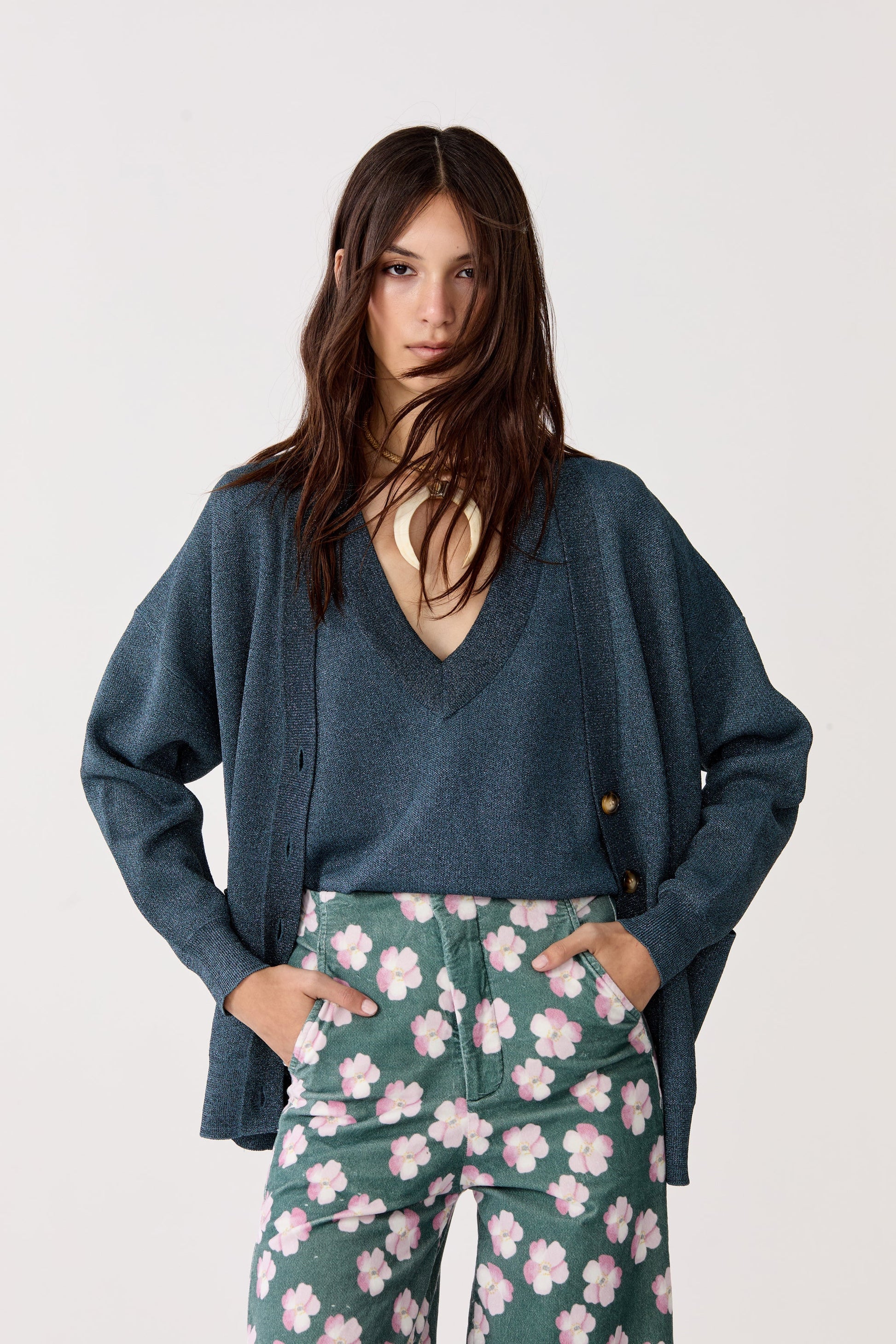 The Aspen Cardigan is simply a standout. With a dash of shimmering lurex magic, this cardigan sweater is guaranteed to garner cozy and cute compliments. It comes with cool patch-pocket details and buttons, plus a versatile V-neck that's perfect for layering. Pair it with the Preppy Lurex Knitted vest for the perfect twin set!