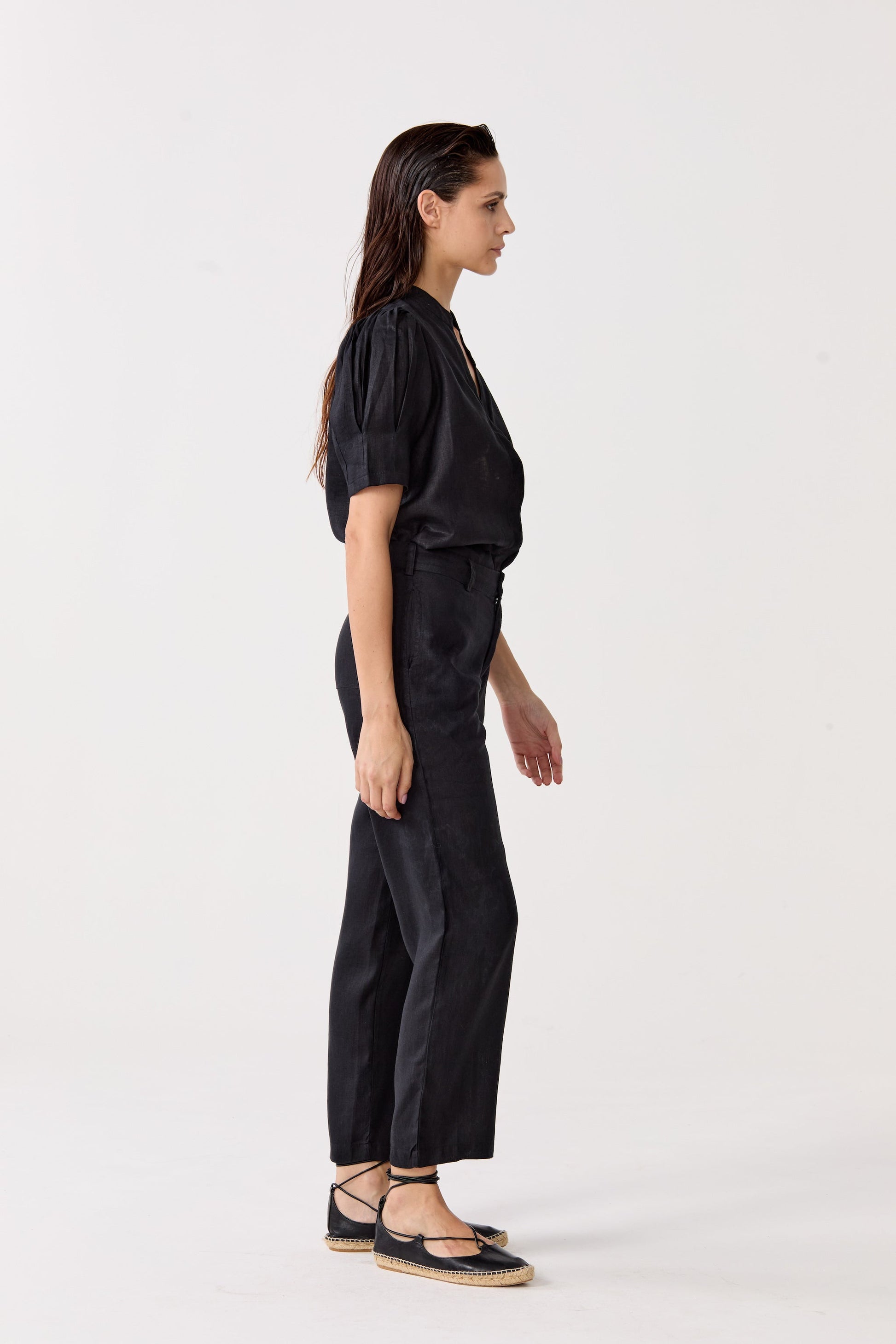 Fun and classic at the same time, the Astro linen pants are a must have. They feature straight legs, a comfortable mid rise, and convenient side and back pockets. They are crafted with 100% natural linen. Go for a bold total look with the Athina linen shirt.