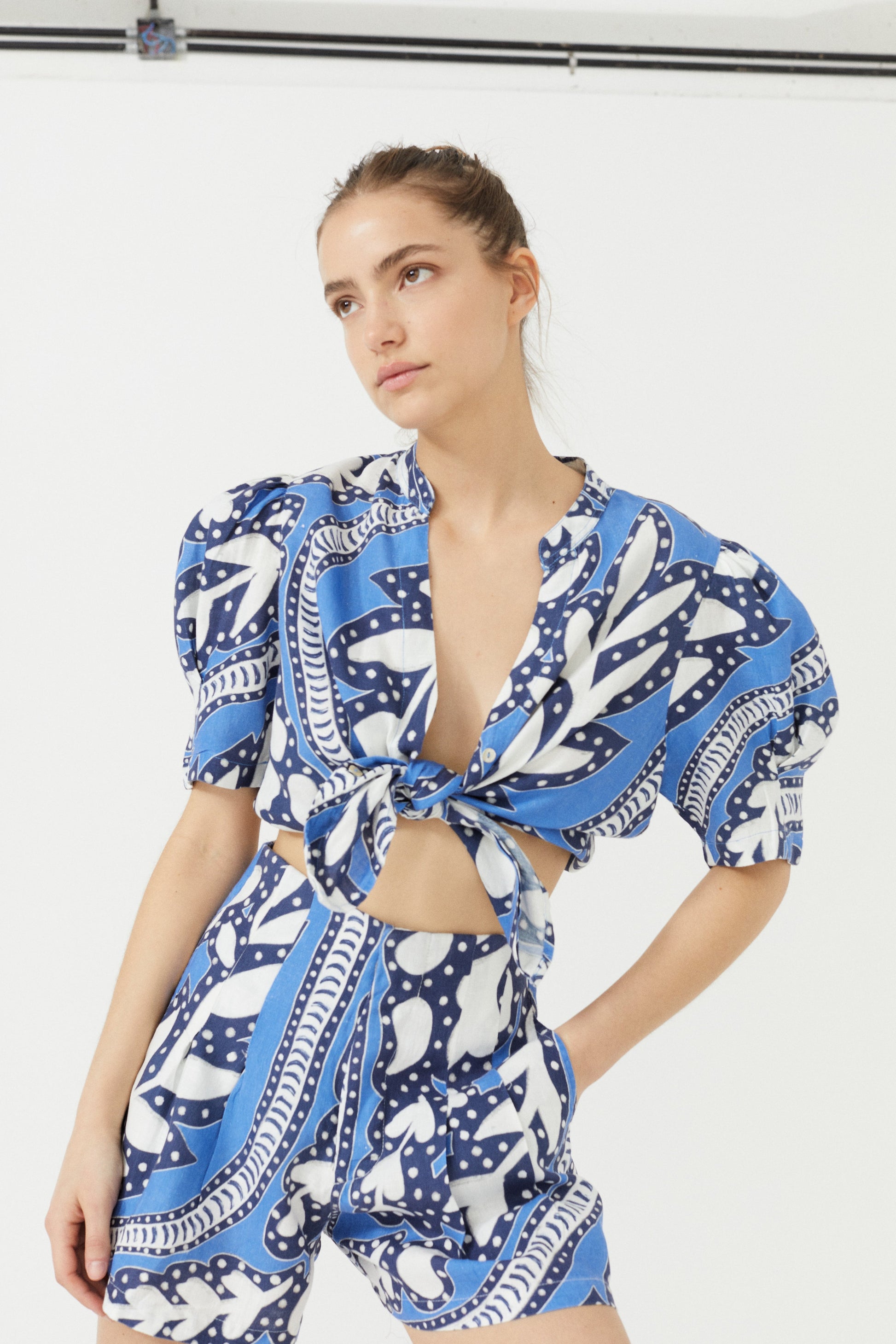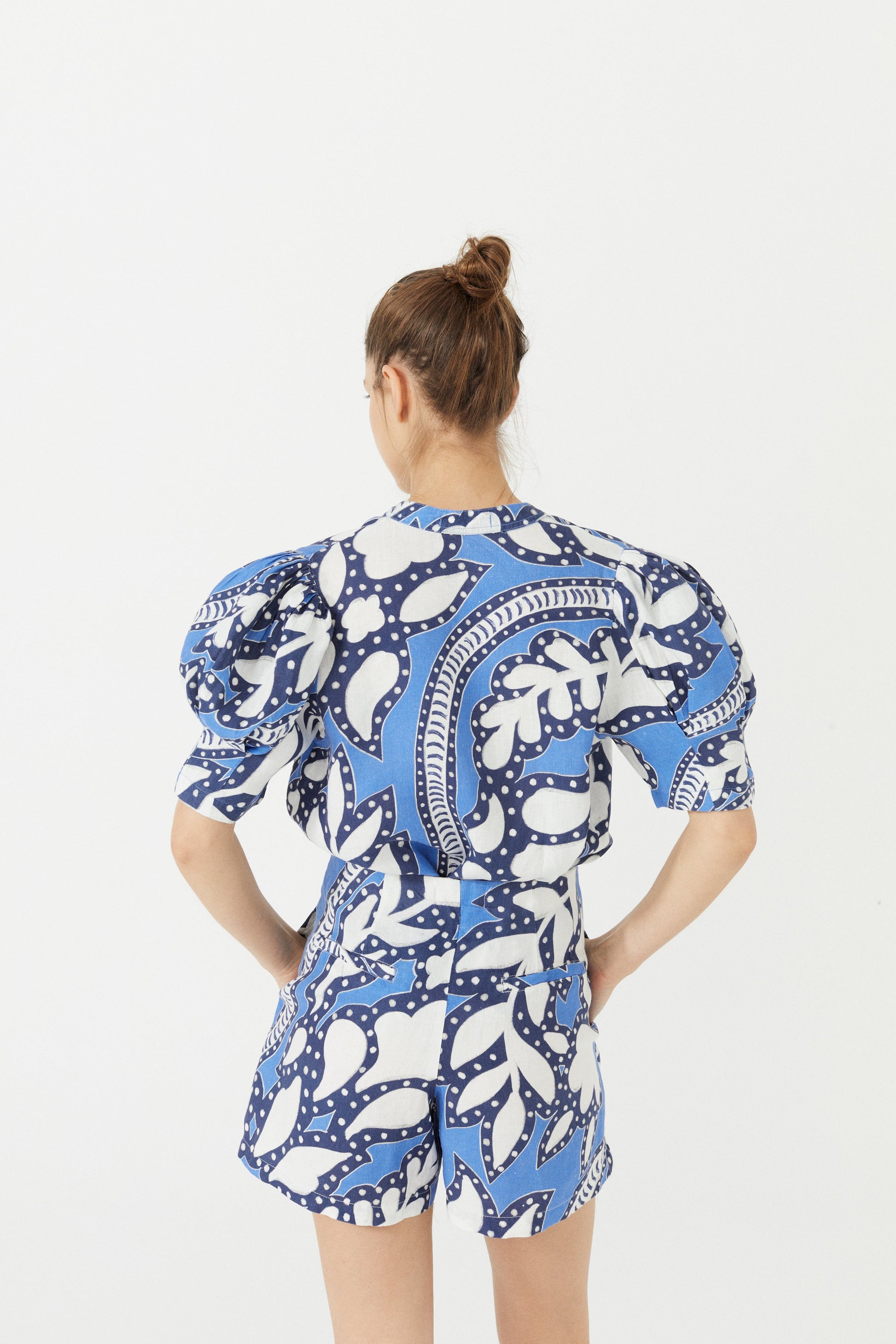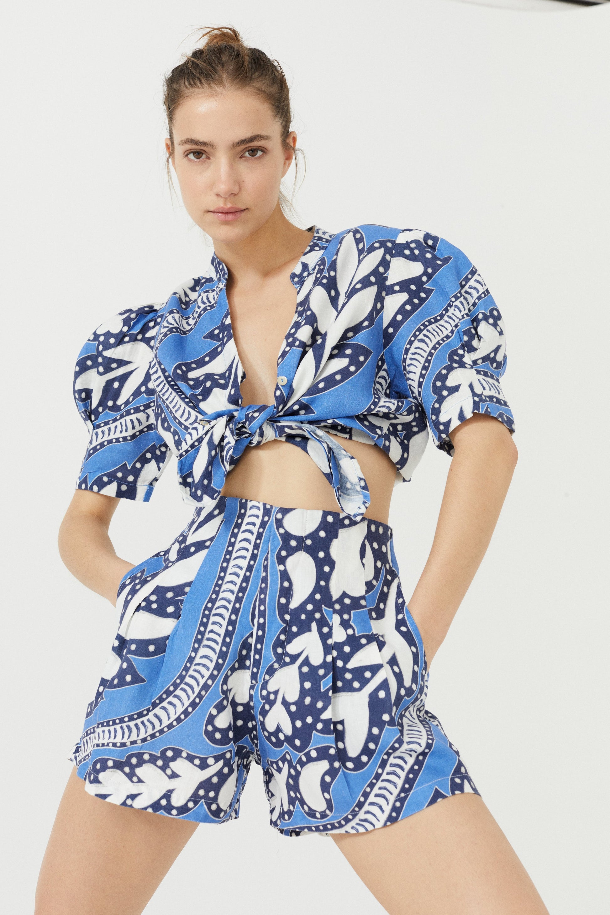 There’s nothing like a good linen shirt. The Athina is femenine, casual and elegant at the same time. Made with our premium 100% linen, it features puffed short sleeves and mao v-neck with shell buttons. Our exclusive Mykonos Print will take you straight to a perfect sunset on the Greek island.