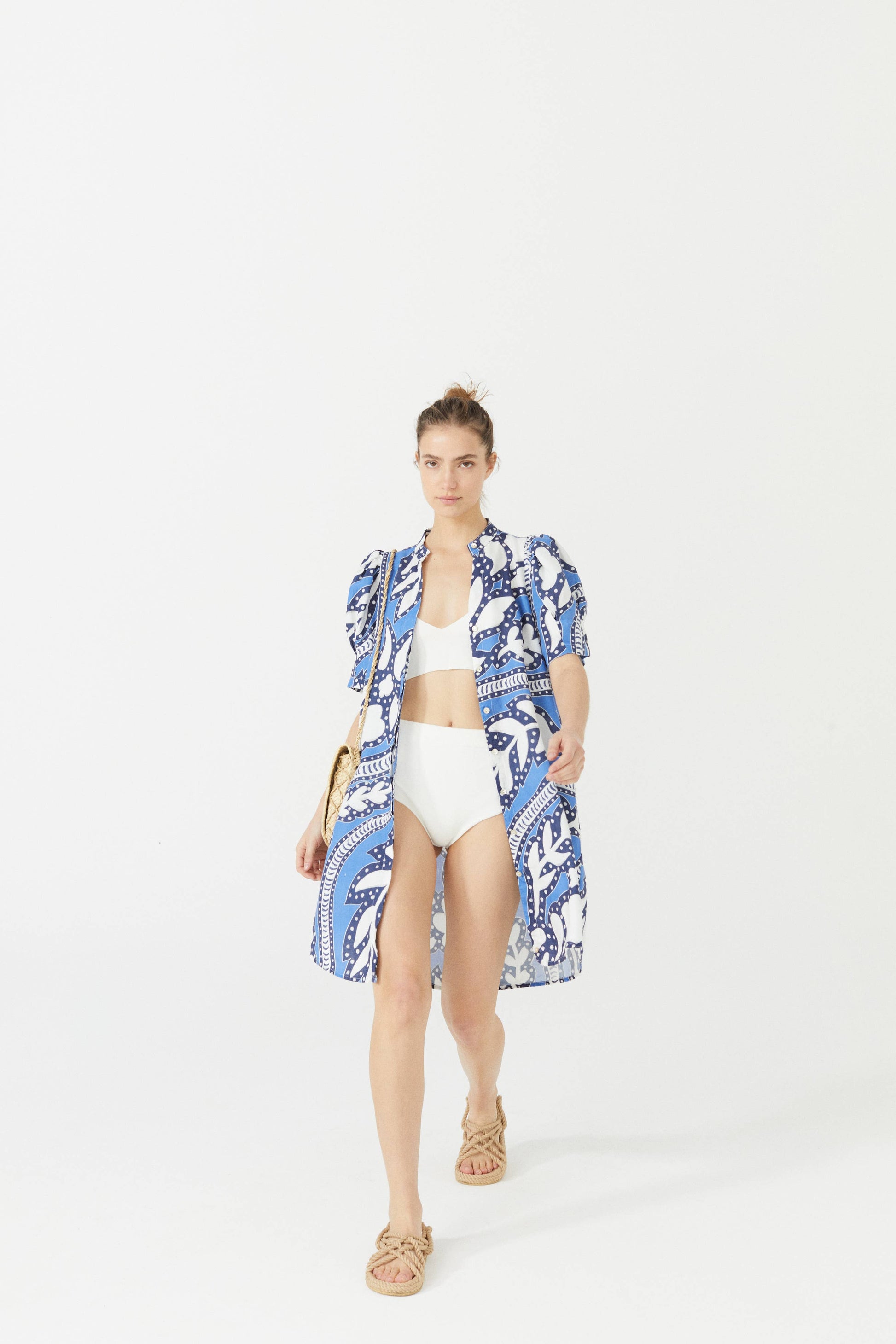 One of our favorite styles ever. With a timeless and femenine look, the Athina will be your go-to linen dress for every occasion. With simple lines, this mini dress is made with 100% organic linen. The puffed short sleeves and mao v-neck with shell buttons make it your new must-have shirt dress.