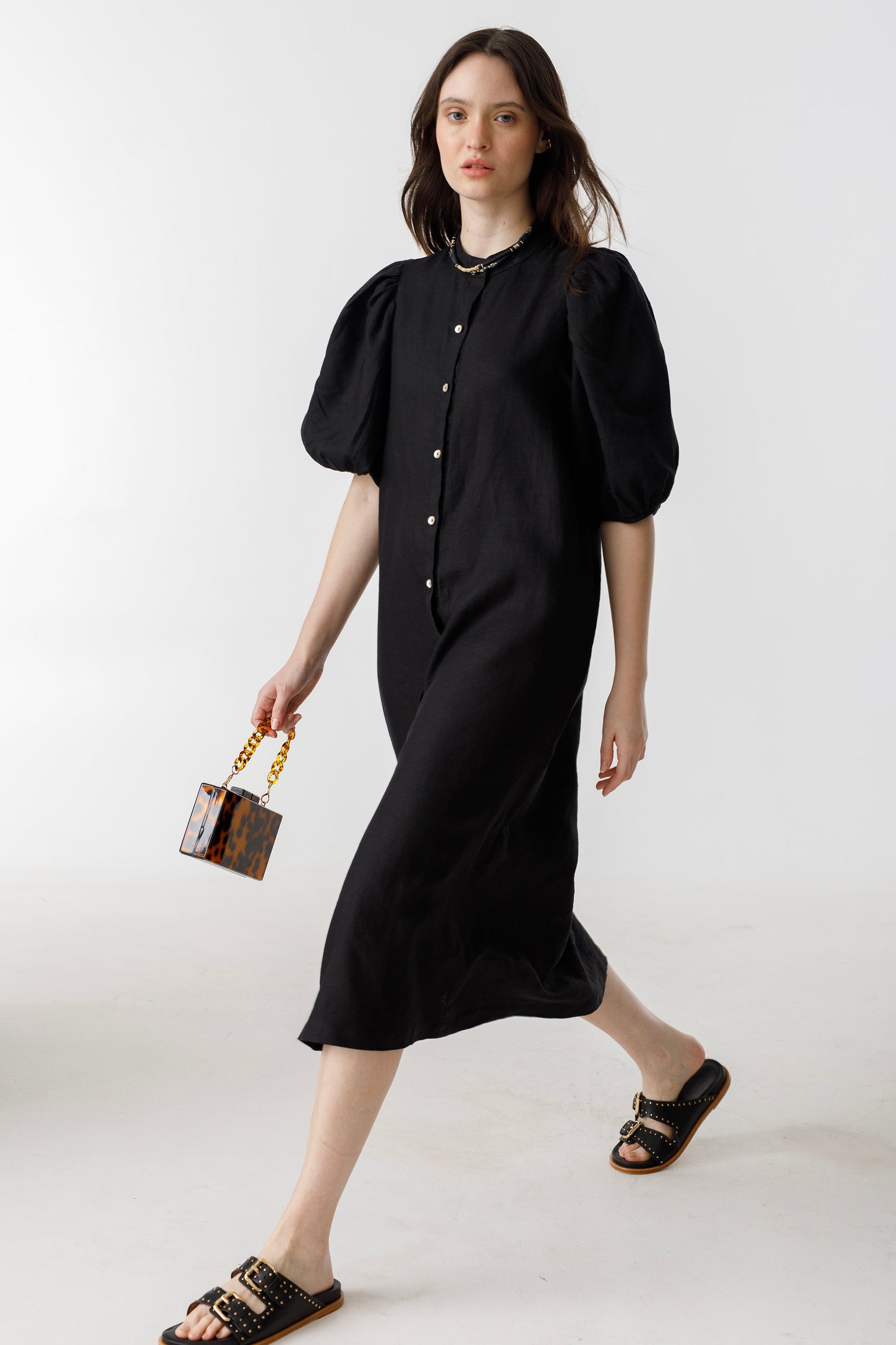 Bubble Linen Dress - Black