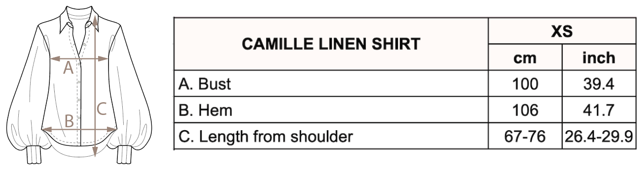 The femenine Camille Shirt is made with our beloved 100% organic linen. Featuring voluminous sleeves and femenine scalloped cuffs, it is a perfectly flattering piece for all year round.
