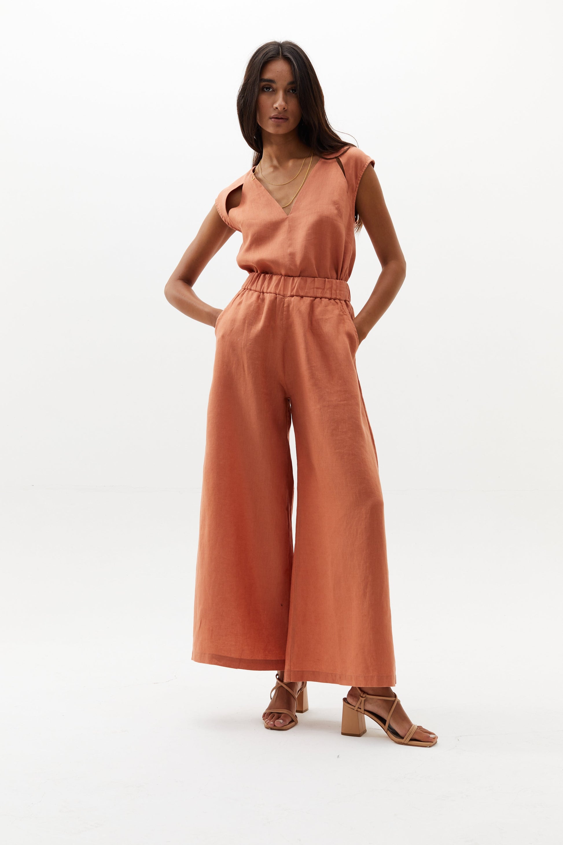 The Cape Pants are definitely a must have. Made from the softest premium 100% organic linen, the elastic waistband, side pockets and super wide legs make the Cape Pants one of our comfiest pieces ever. From the beach to a dinner party, this chic style can be worn for any occasion.