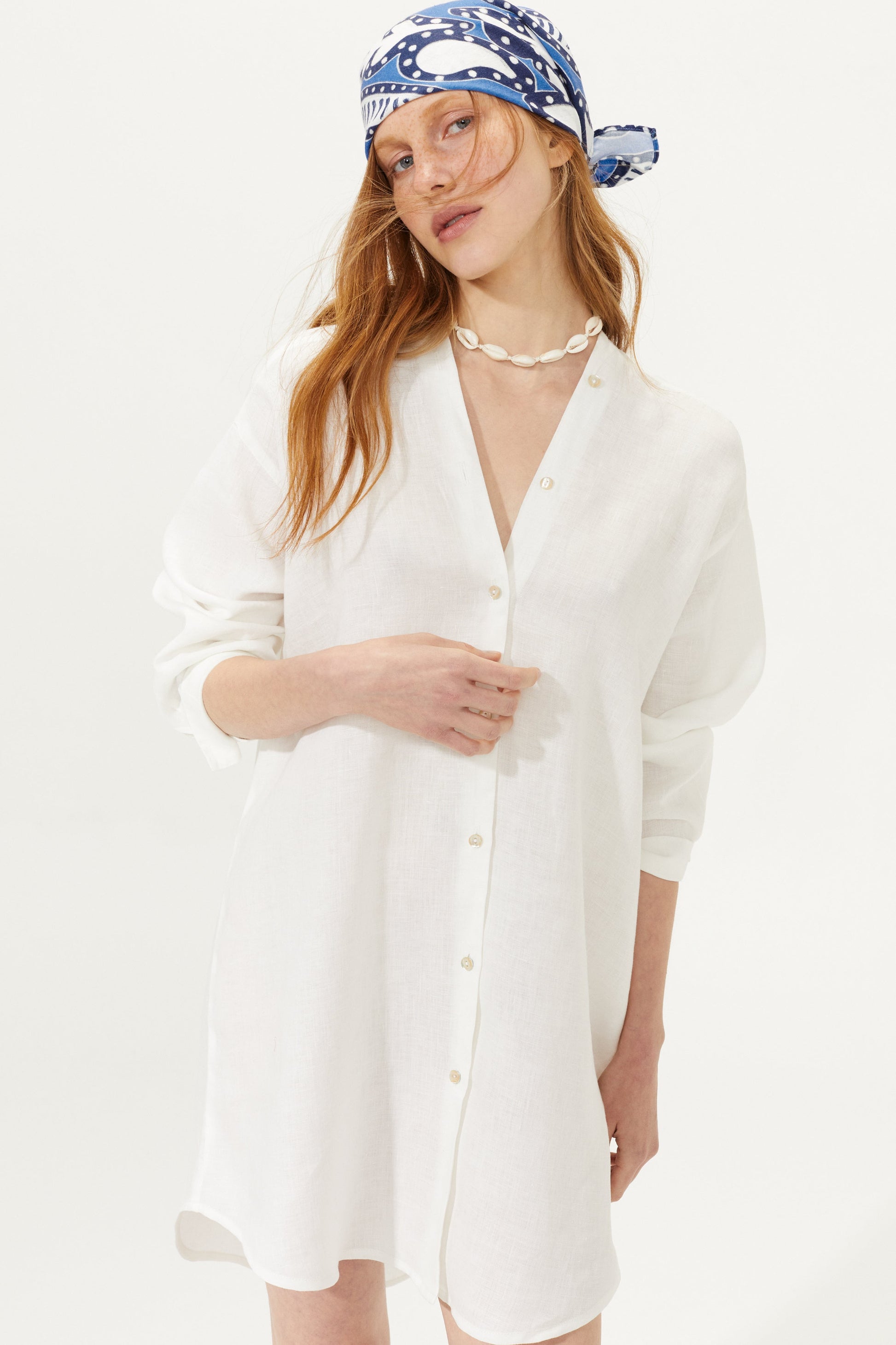 A new must, this timeless shirt dress will be your best ally for the season. Featuring a V-neck with shell buttons all the way down from the shoulder, the Exuma has long sleeves, curved hemline and a longer back.