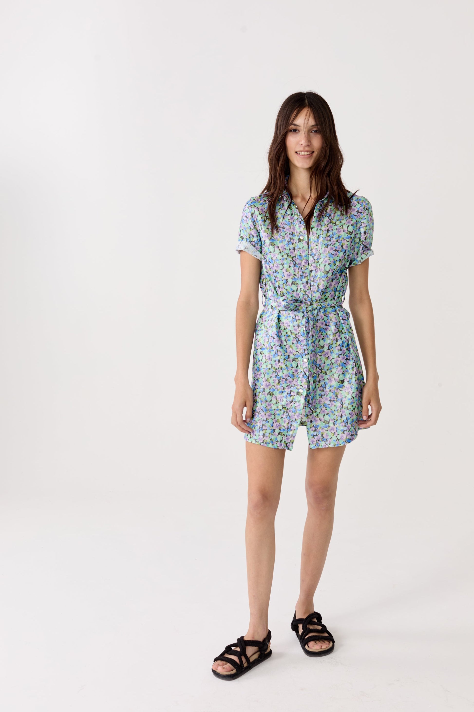 Our new Franca Metallic Linen Dress is a feminine and easy button-down short dress.