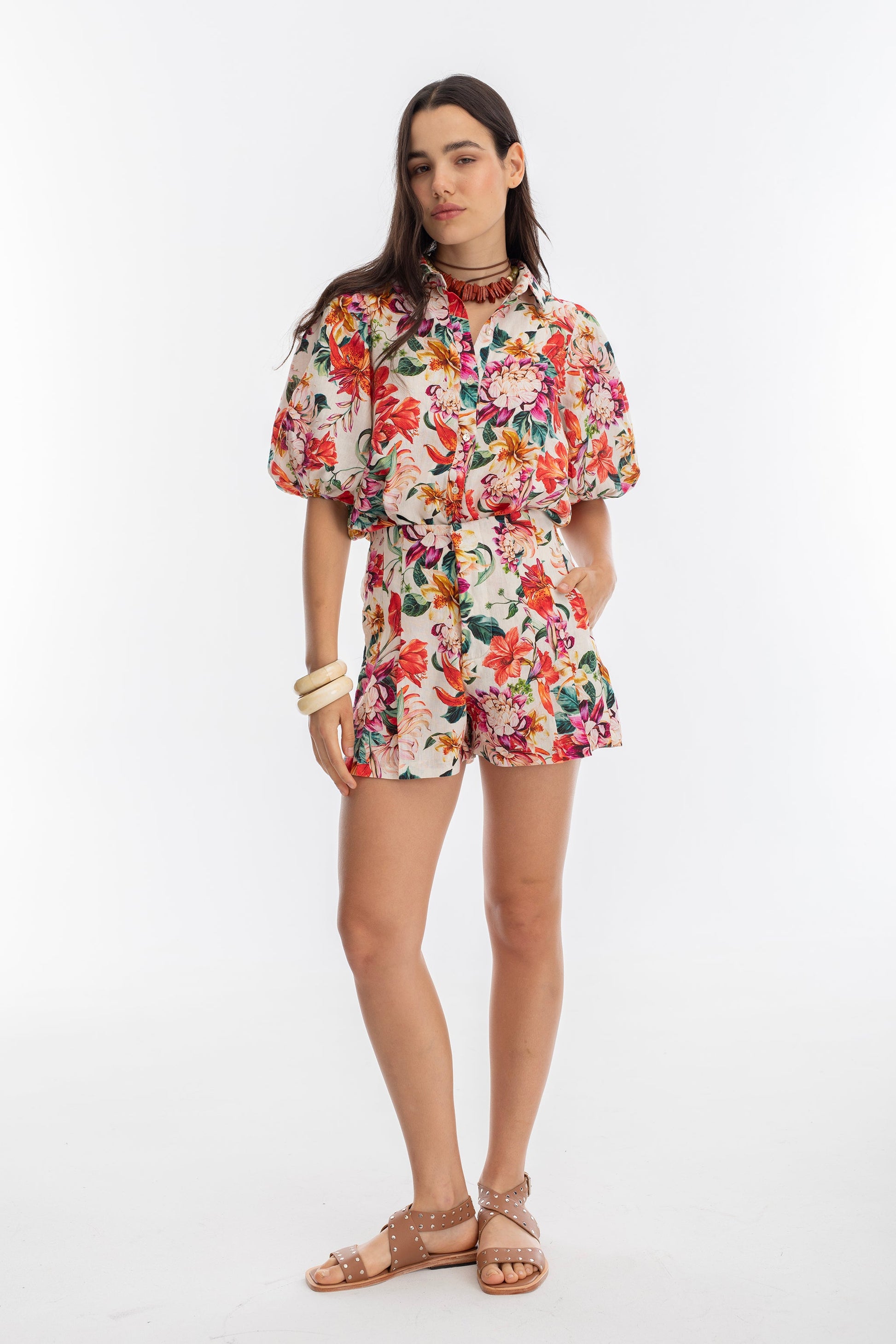 Frida Linen Shorts - Full Bloom Print