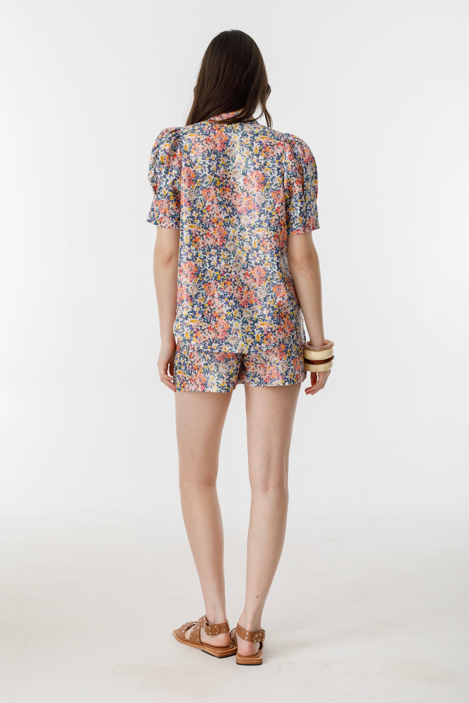 Frida Metallic Linen Shorts - Florece Print