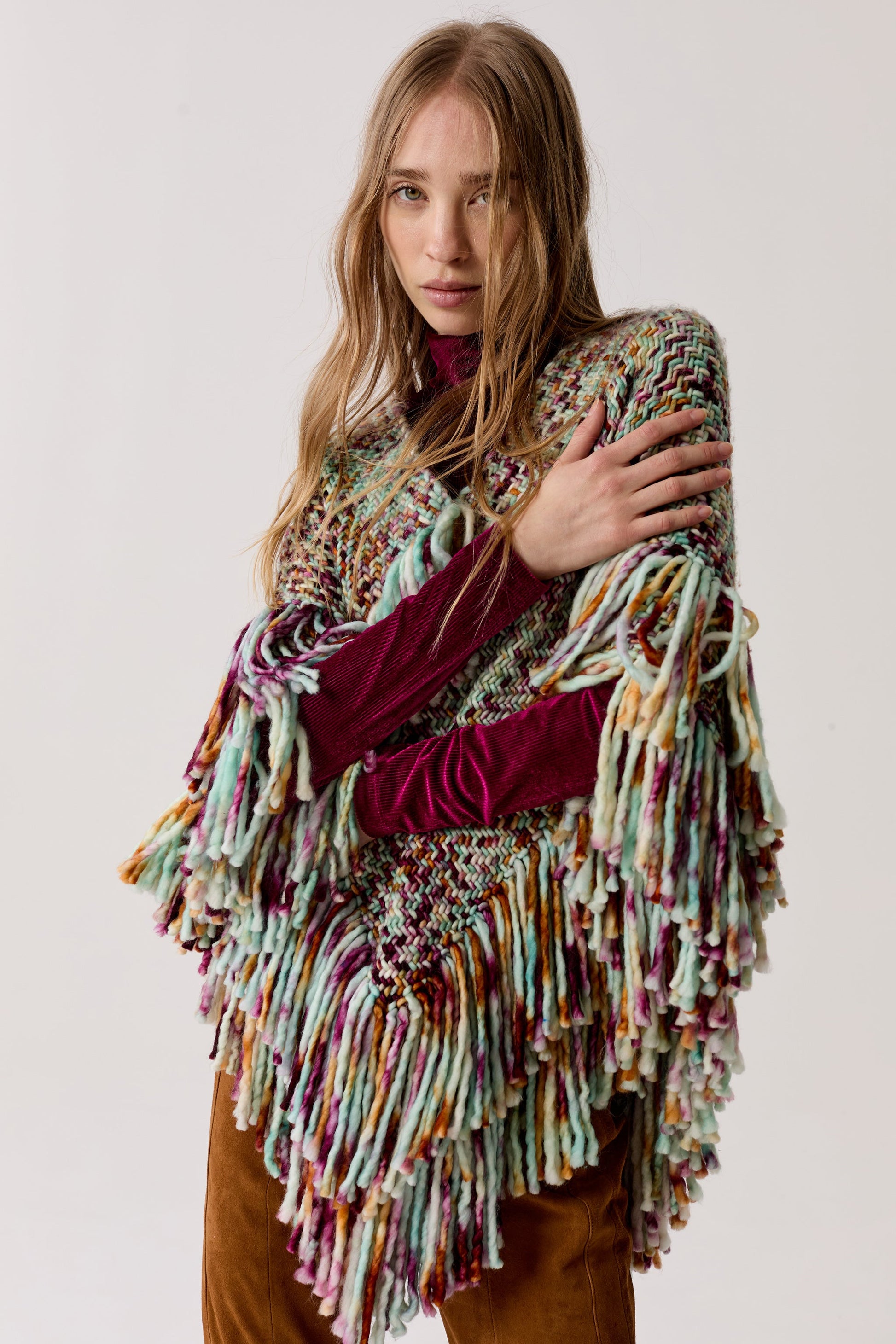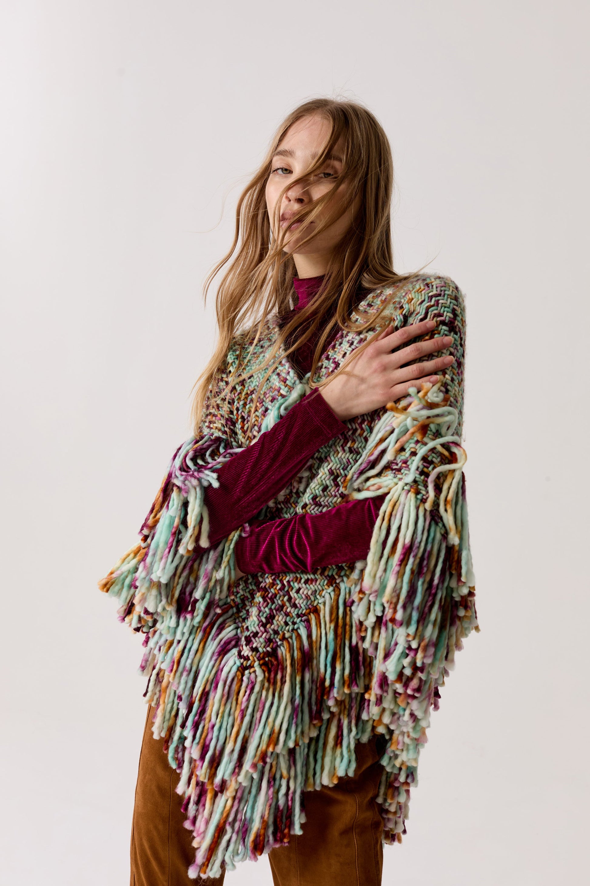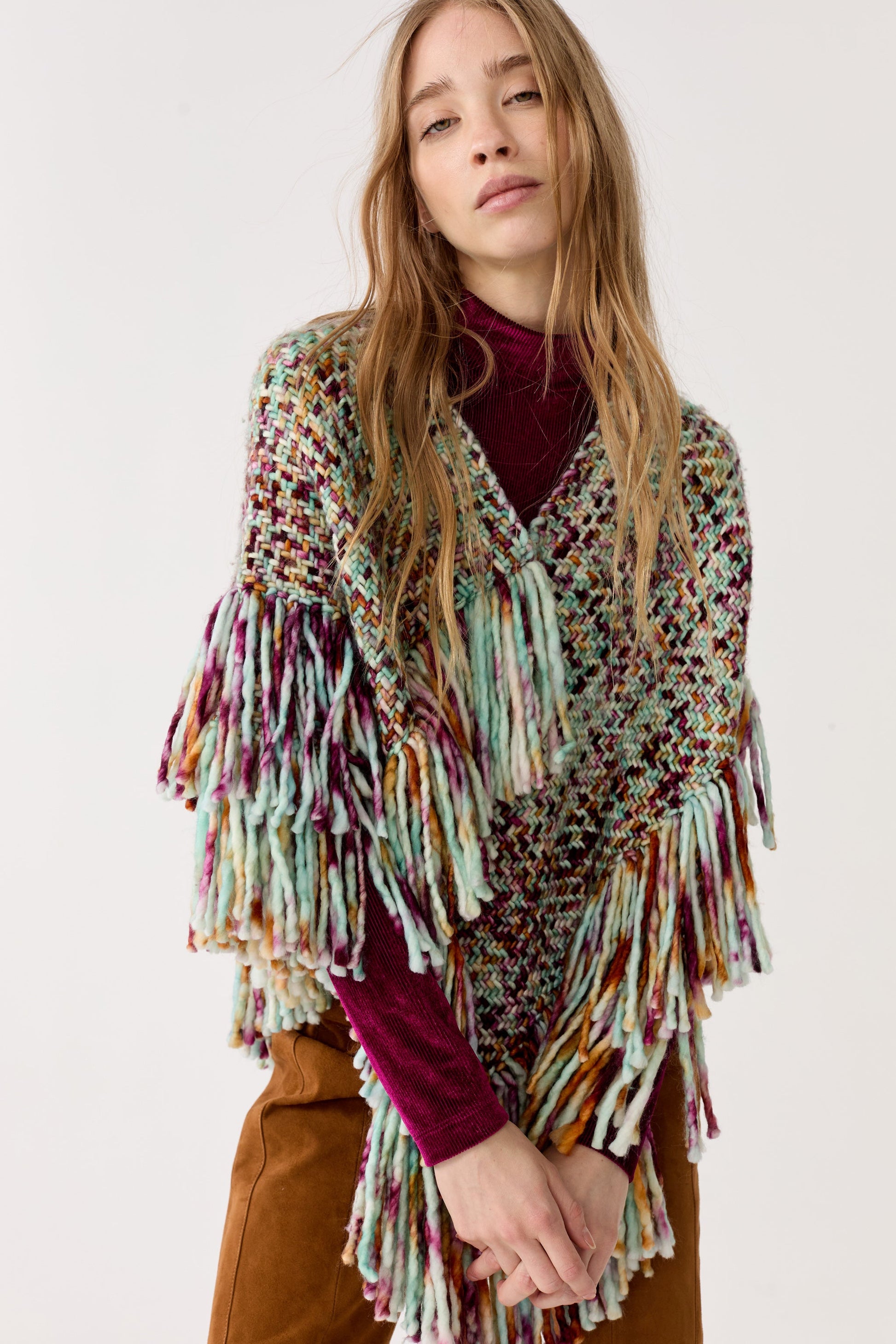 Our Fun Poncho is short and easy, featuring a V neck and playful fringes. It was handmade by Uruguayan woman artisans from NGO Manos del Uruguay, which fills us with pride and love for each of our Merino Wool styles.