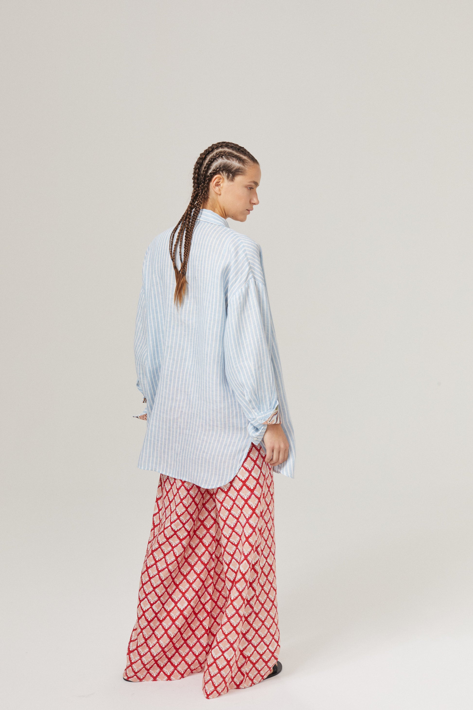 The Island Linen Shirt is the perfect oversized piece for any wardrobe. Easy and chic, it features shell buttons, a classic collar and a longer hemline on the back. It’s made with our premium 100% organic linen, with contrasting printed details in the buttons placket and cuffs.