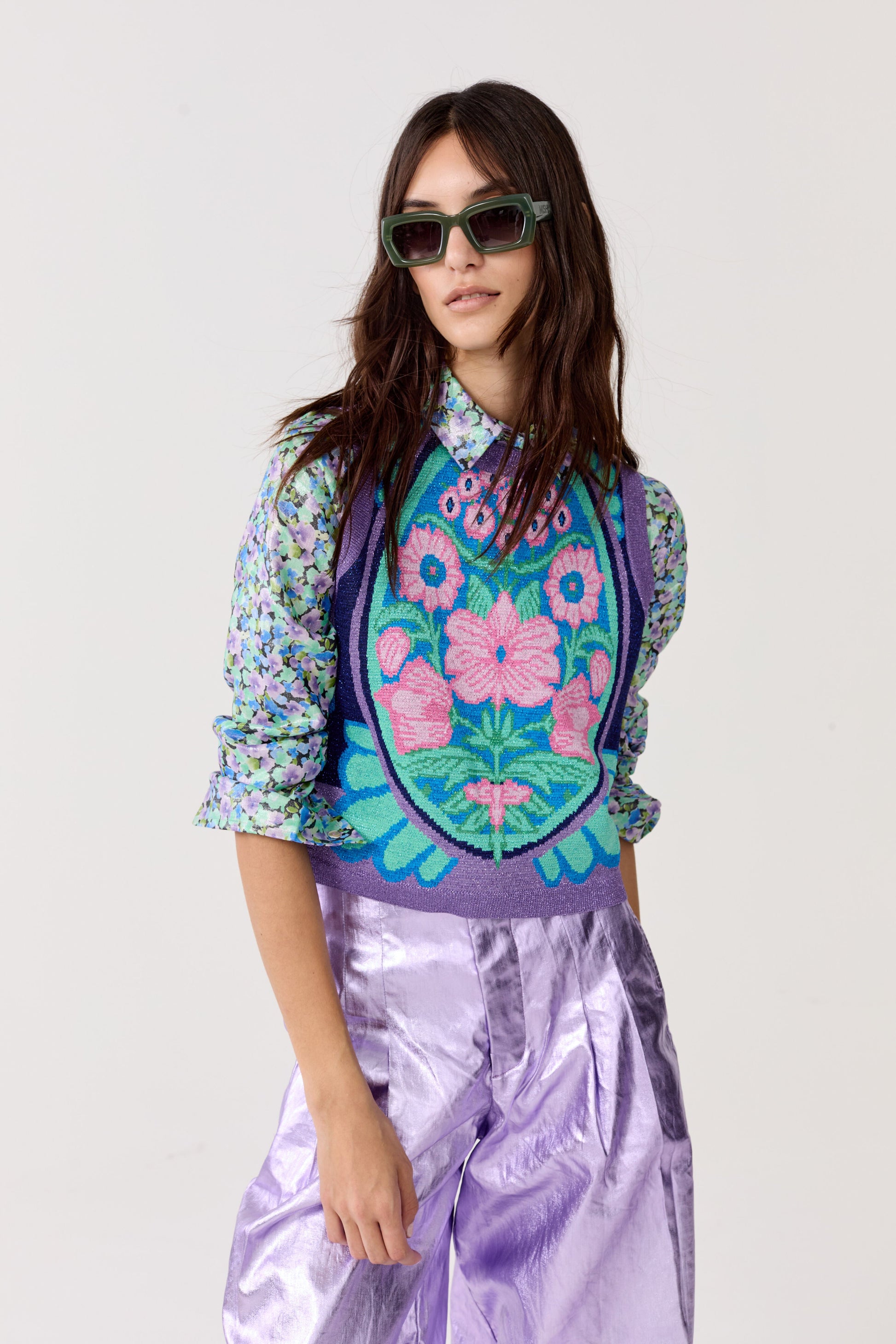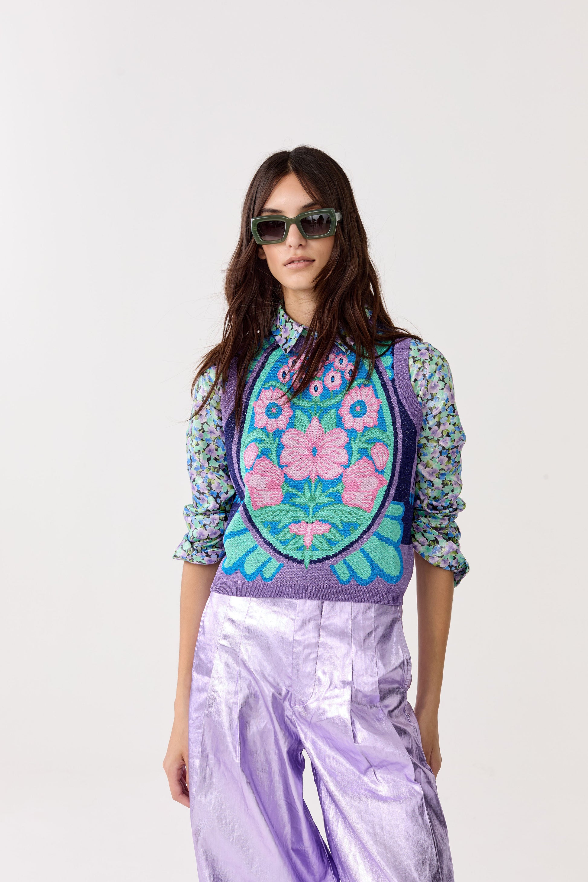 This little number will be your ally for dressing up any look. The sleeveless Glitter Top is knitted with lurex for a shiny texture, and its boxy silhouette makes it perfect for layering over our cotton poplin shirts.