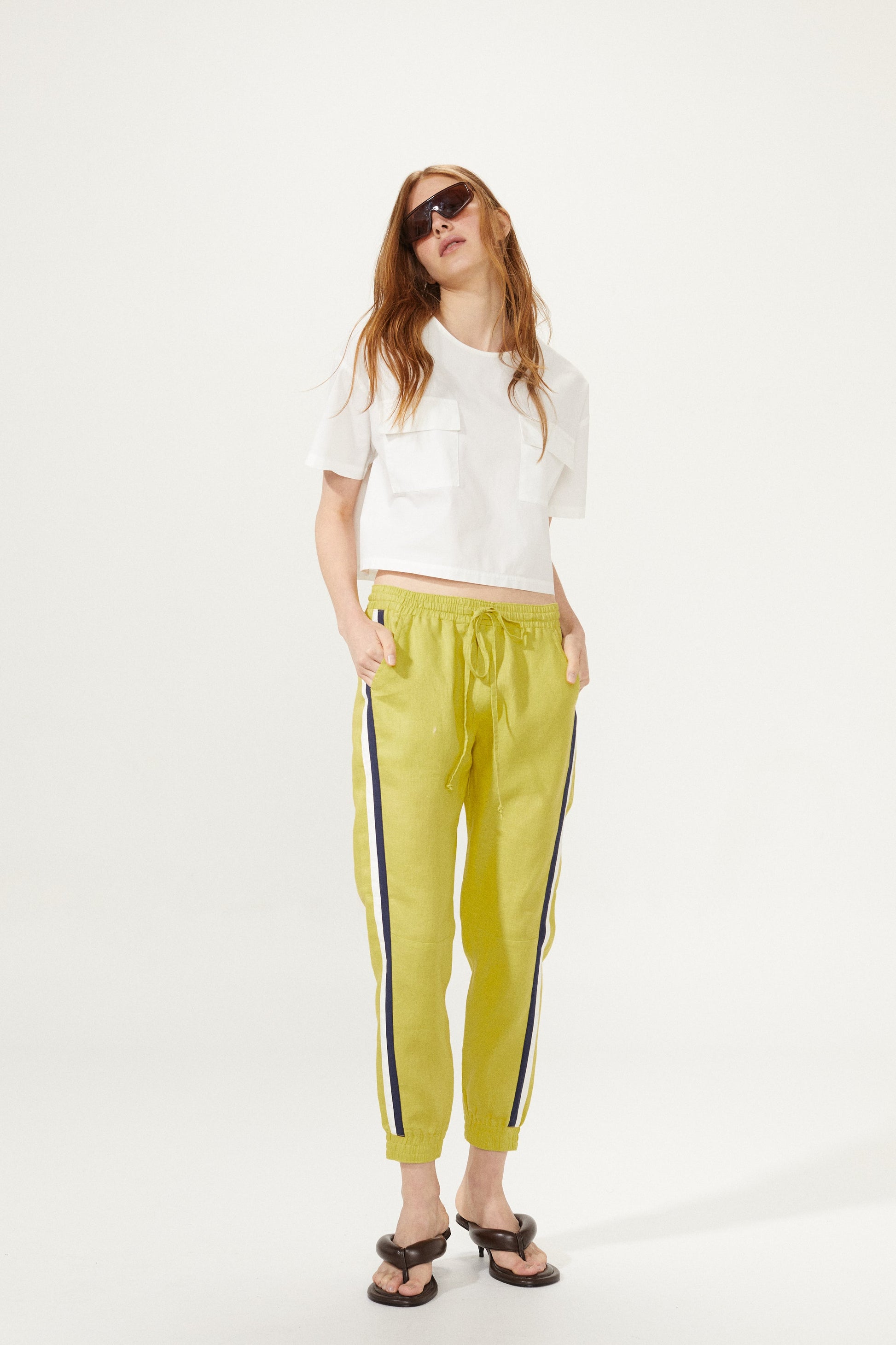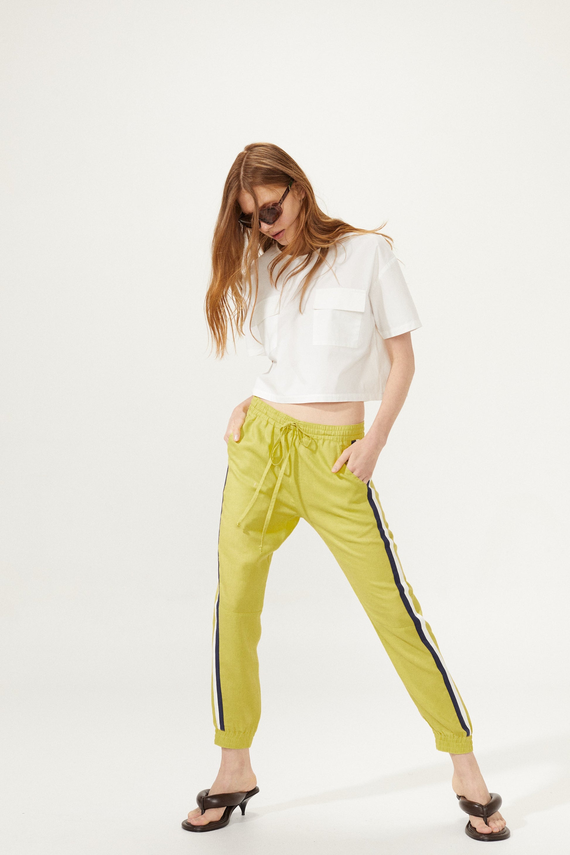 Casual and chic, the Lexus Linen Jogger Pant features elastic high waistline and ankle cuffs. The side linen trimming adds an extra pop of color, and the side pockets makes it even more comfy.