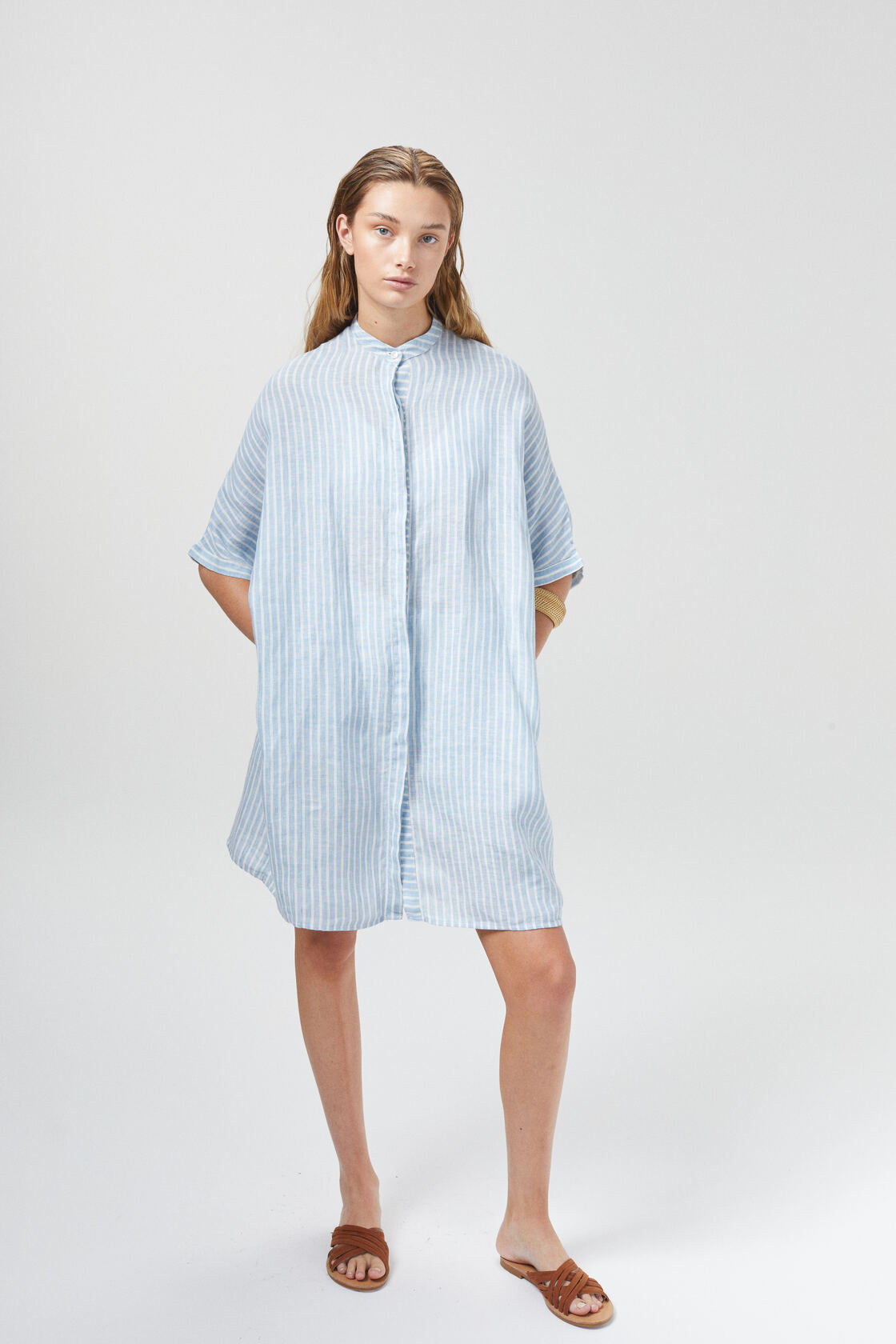 Lighthouse Linen Shirt Dress - Light Blue / White Stripes