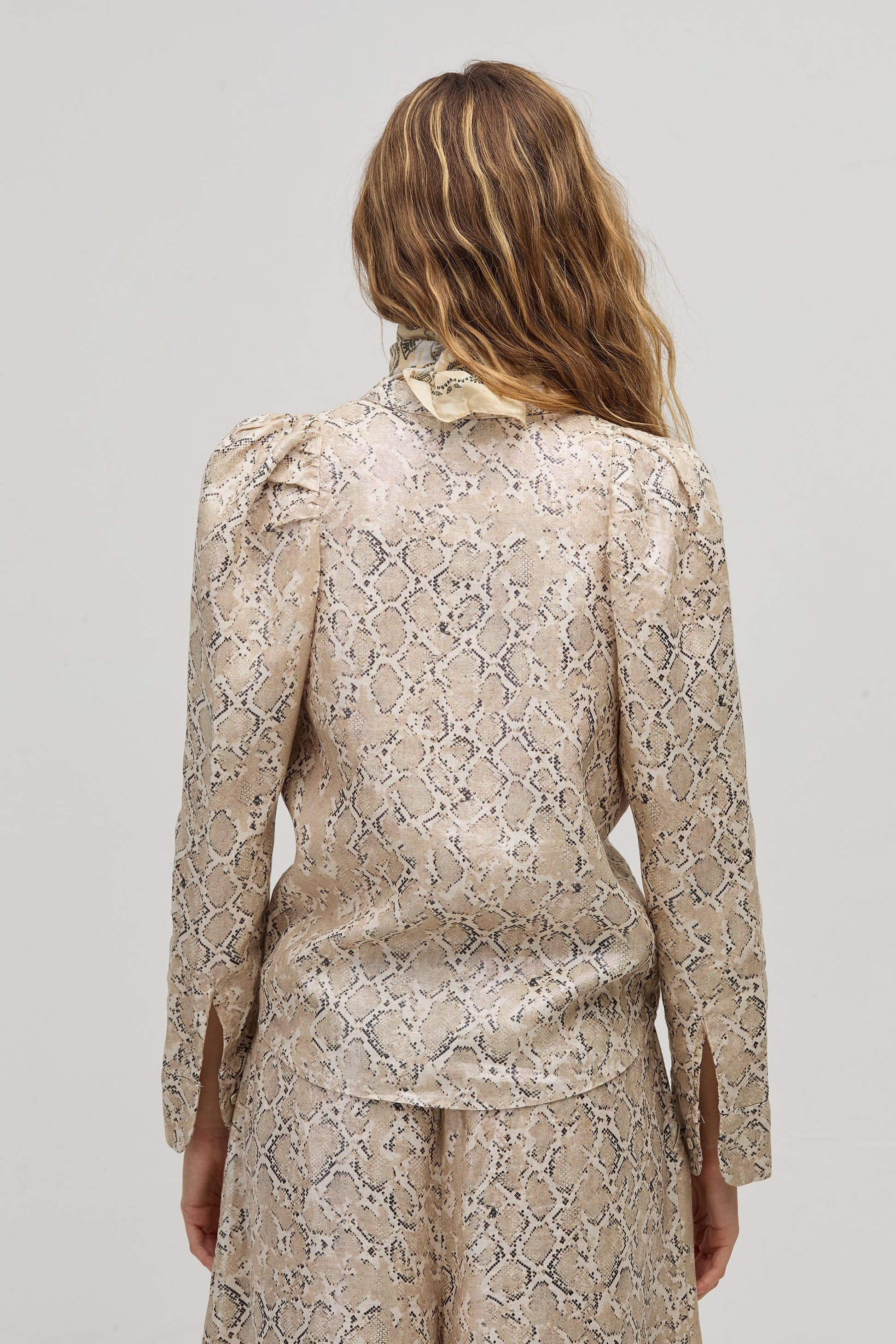 Lilium Metallic Linen Shirt - Snake Print
