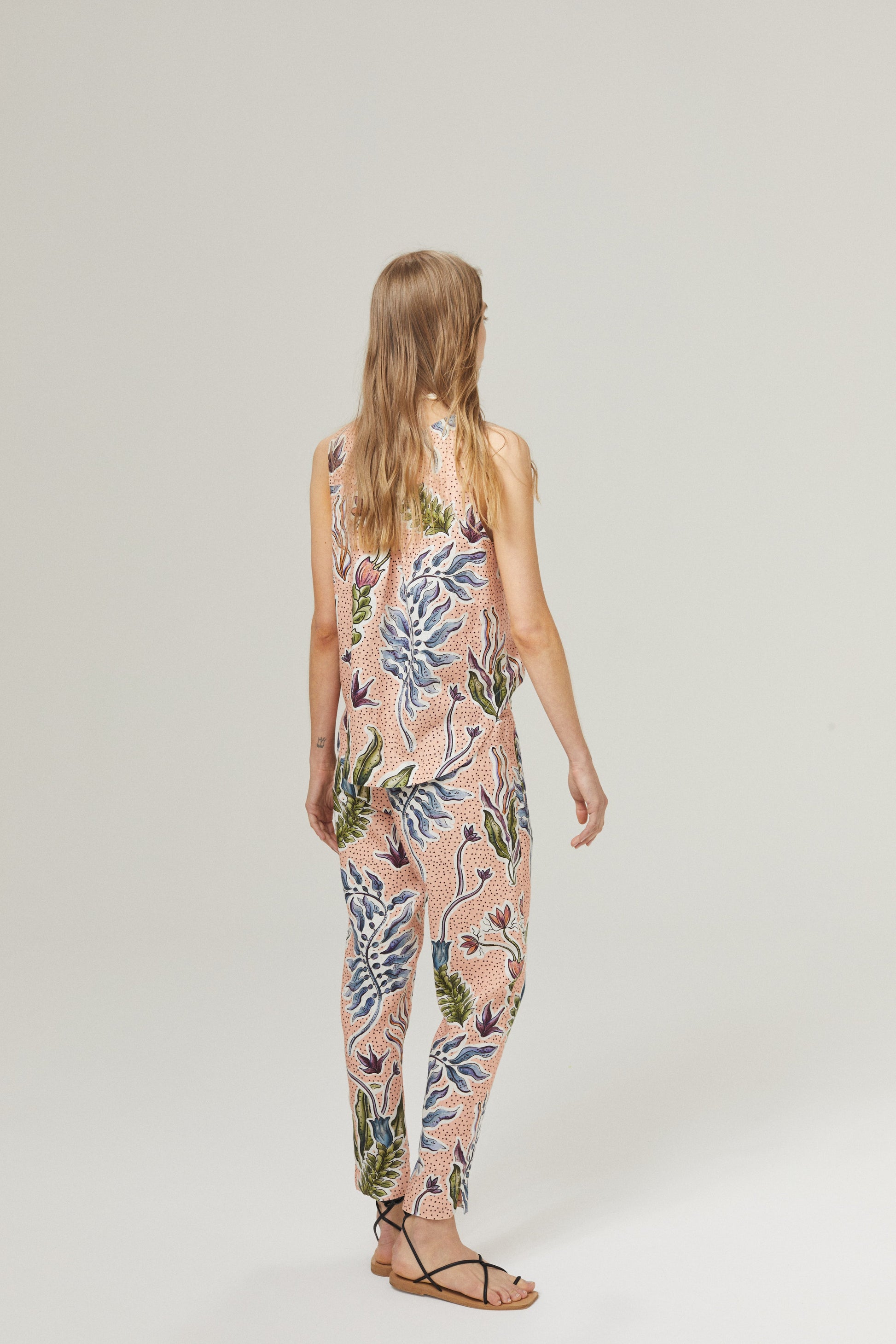 Lotus Jogger Linen Pants - Marrakech Gardens Print with Contrasting Details