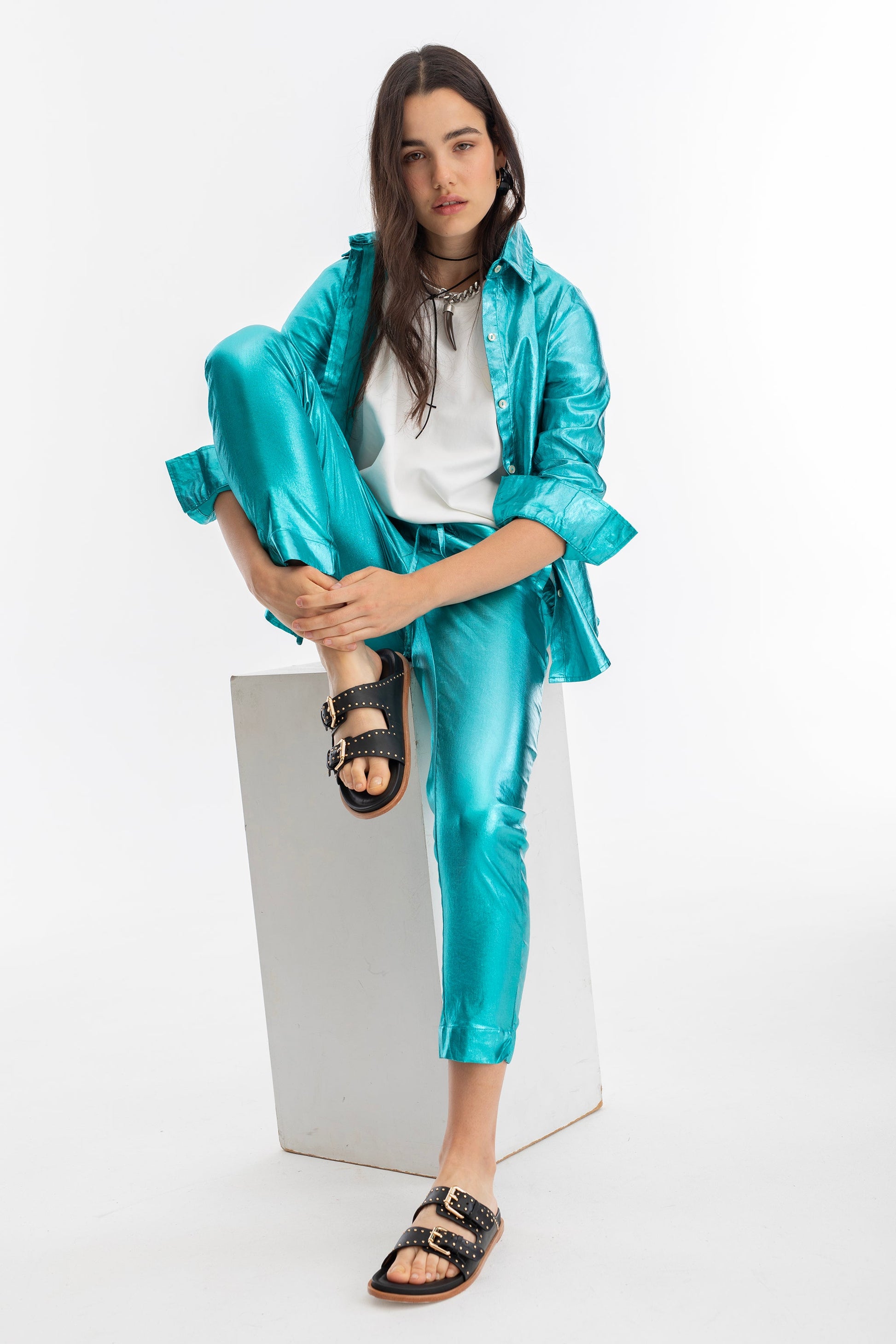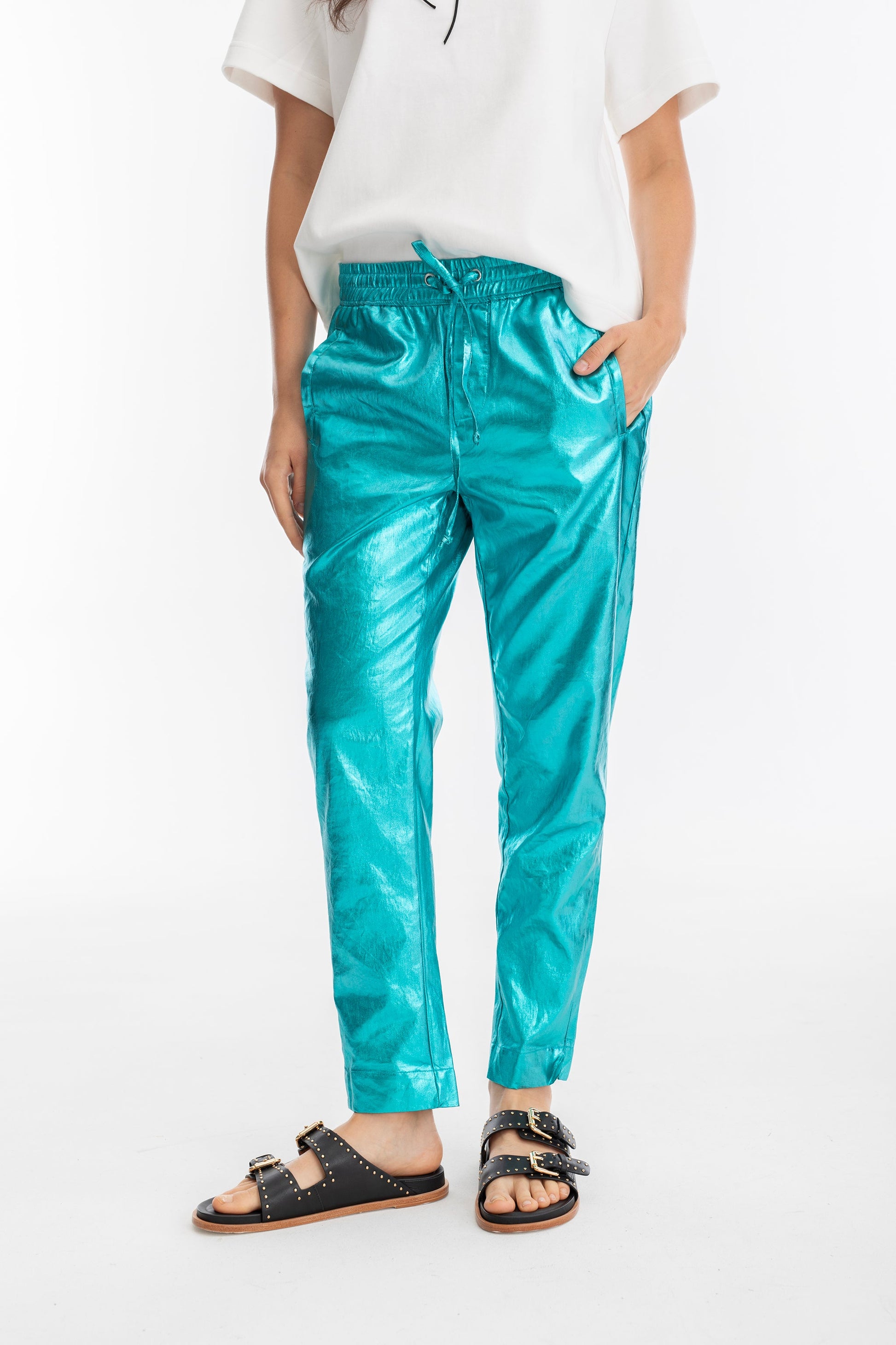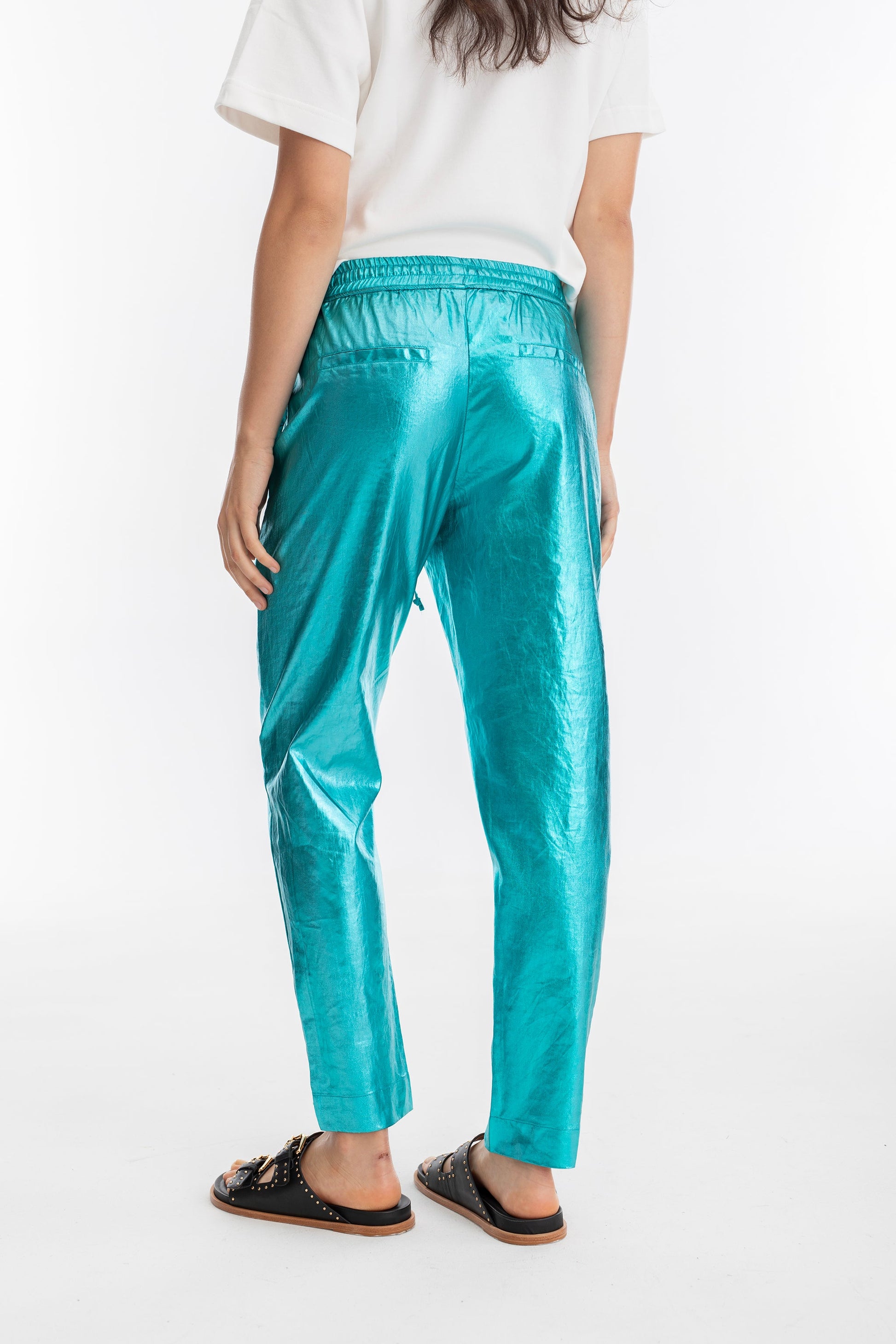 Lotus Metallic Linen Jogger Pants - Turquoise