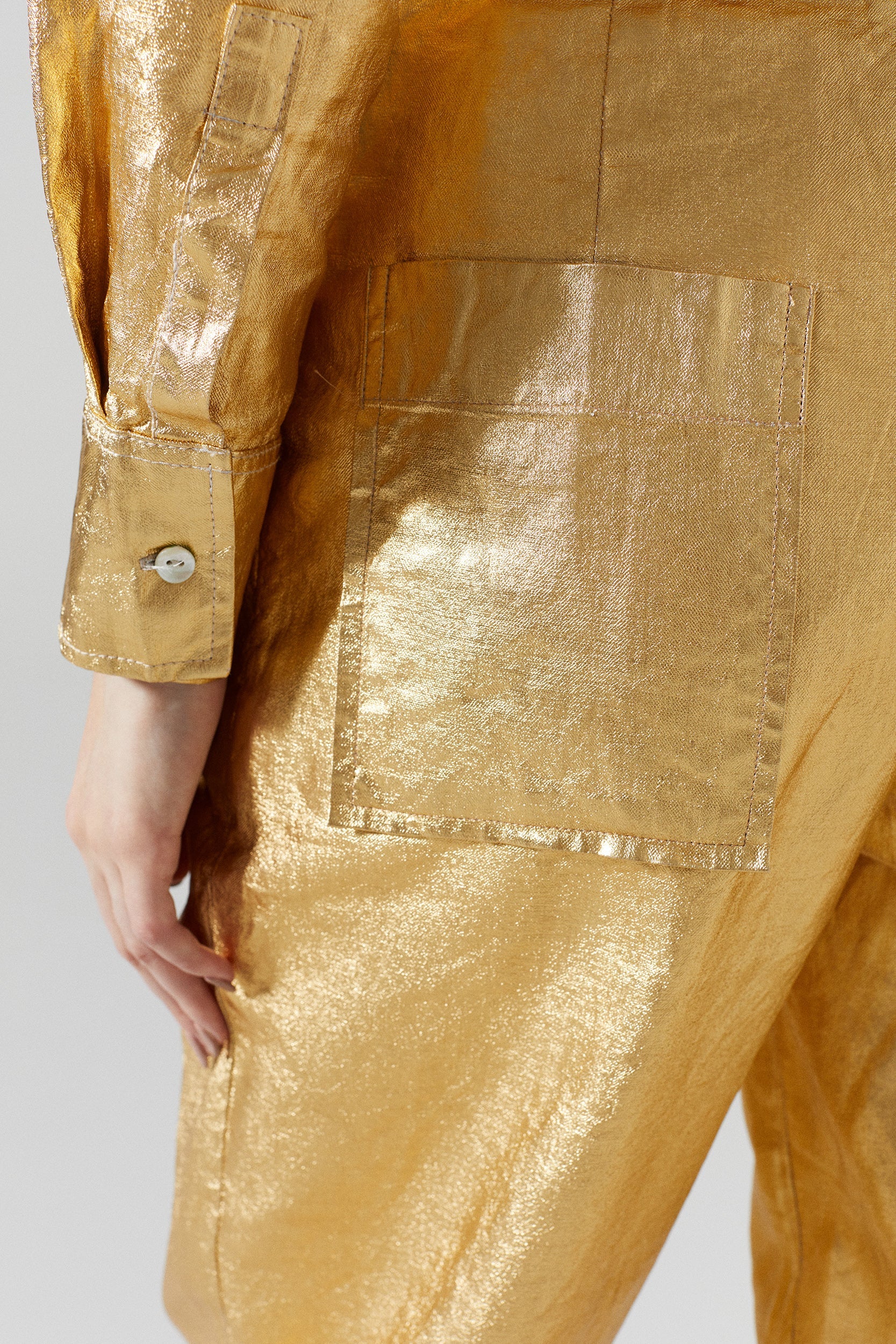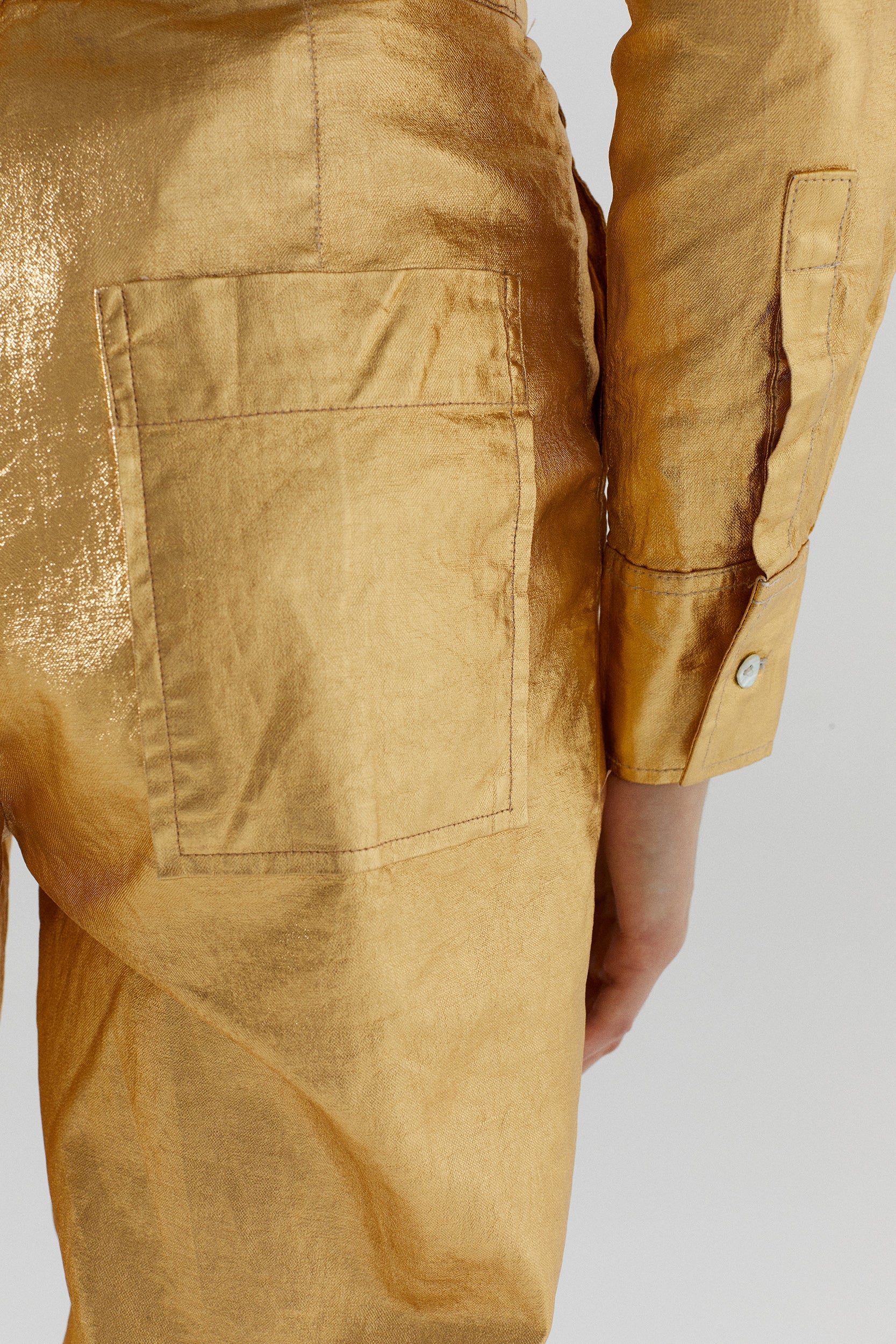 The metallic trend is going nowhere, and the Mercer is the perfect slouchy pant to get you shining this season. With a loose fit, it features a mid waist and straps in cuffs for a baggy casual effect. It has side and back square pockets, and front zipper.