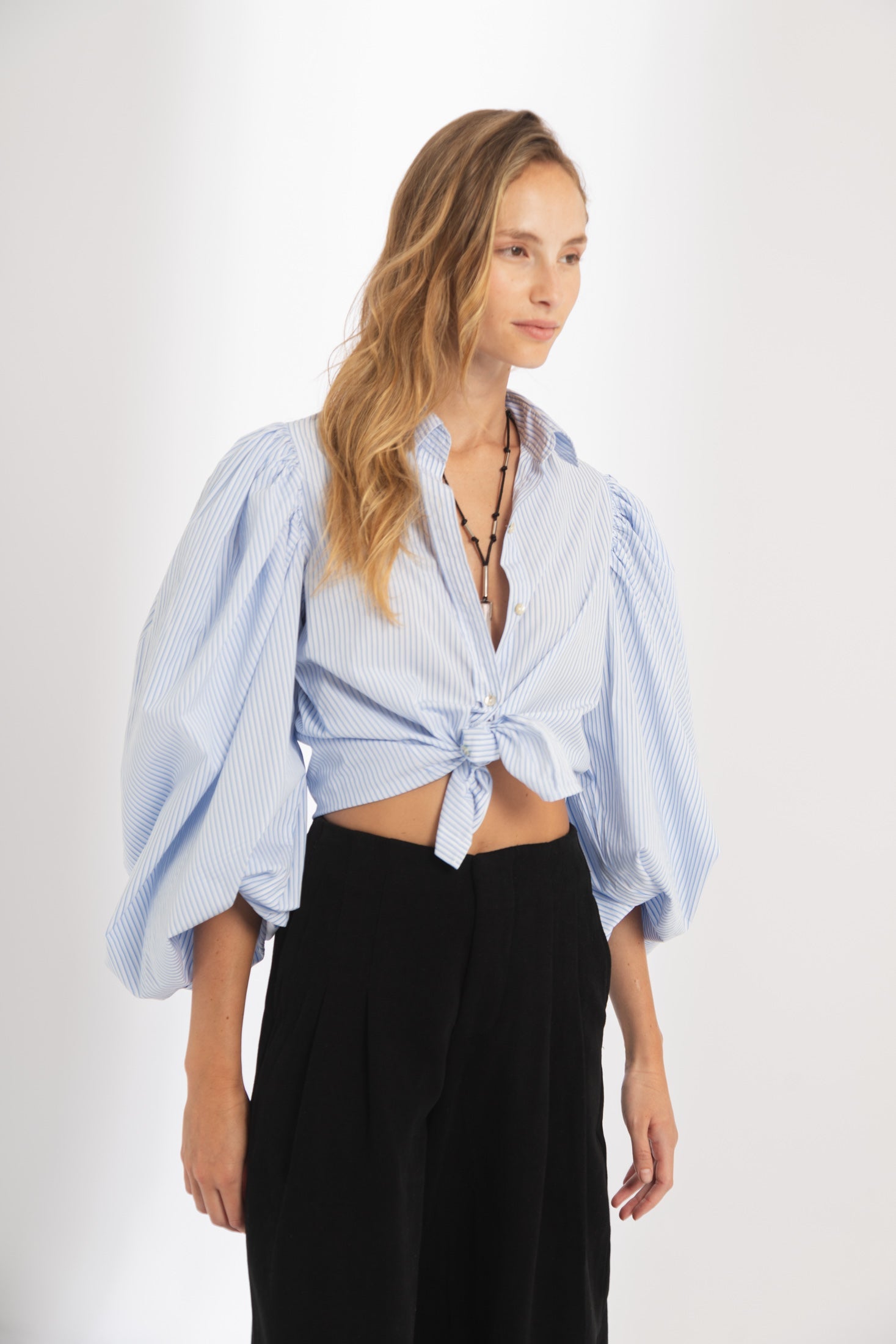 The Samba Cotton Poplin Shirt features super voluminous long sleeves, a classic collar and shell buttons, which makes it stand halfway between fun and elegant.