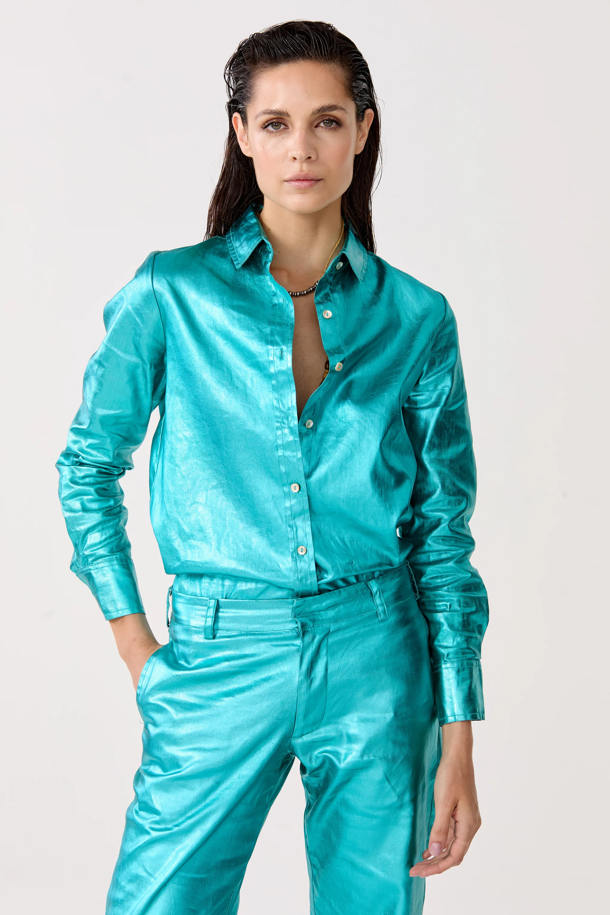 Our metallic San Marino linen shirt is the perfect elevated statement piece to have on your wardrobe.