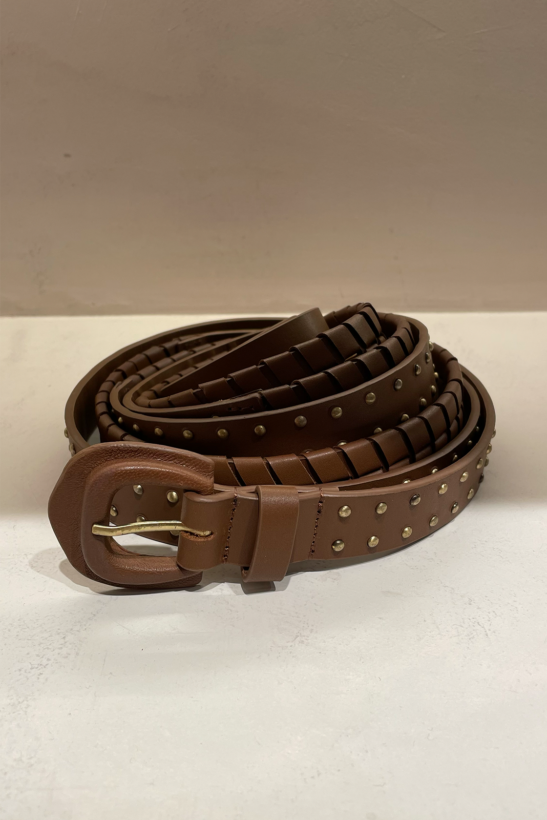 This triple wrap belt is crafted with genuine cow leather, and the studs and braided parts add a fun and folky vibe to this piece.