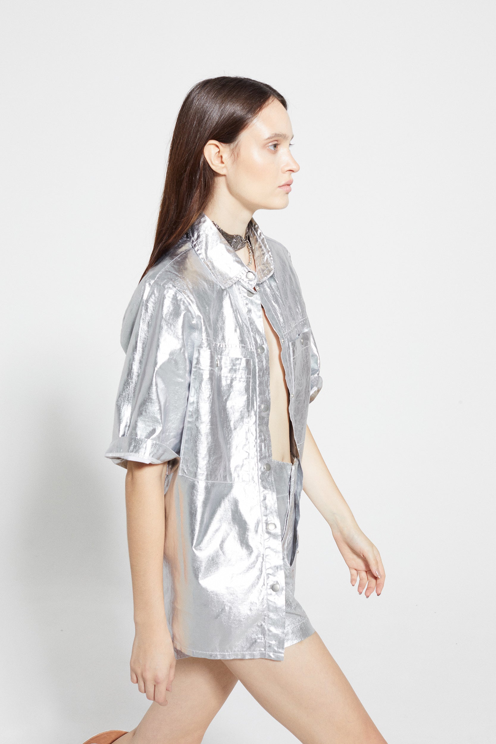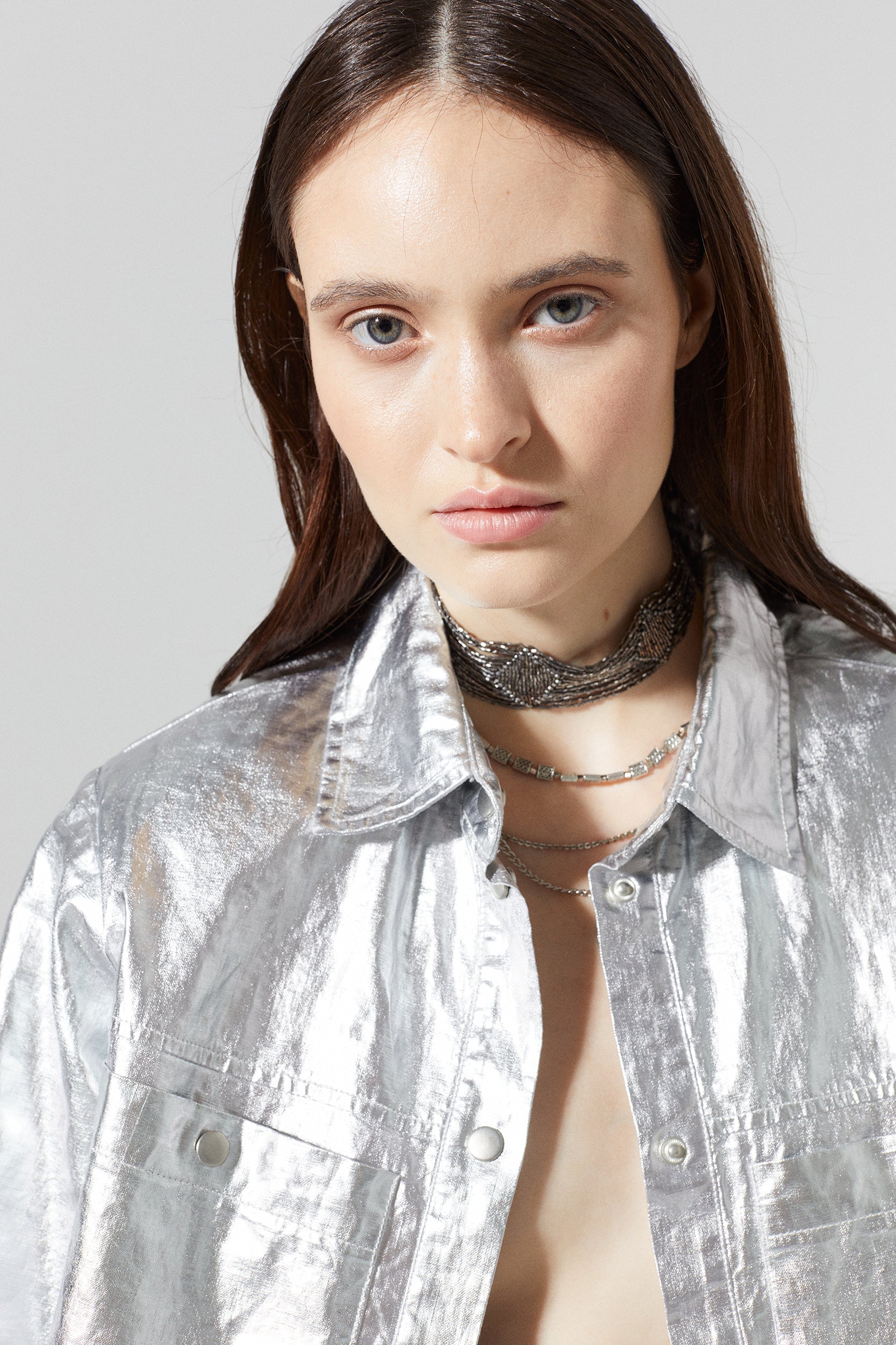 Pure gold. Perfect for layering, the Soho Shirt in metallic linen is one of our favorite styles of the season.