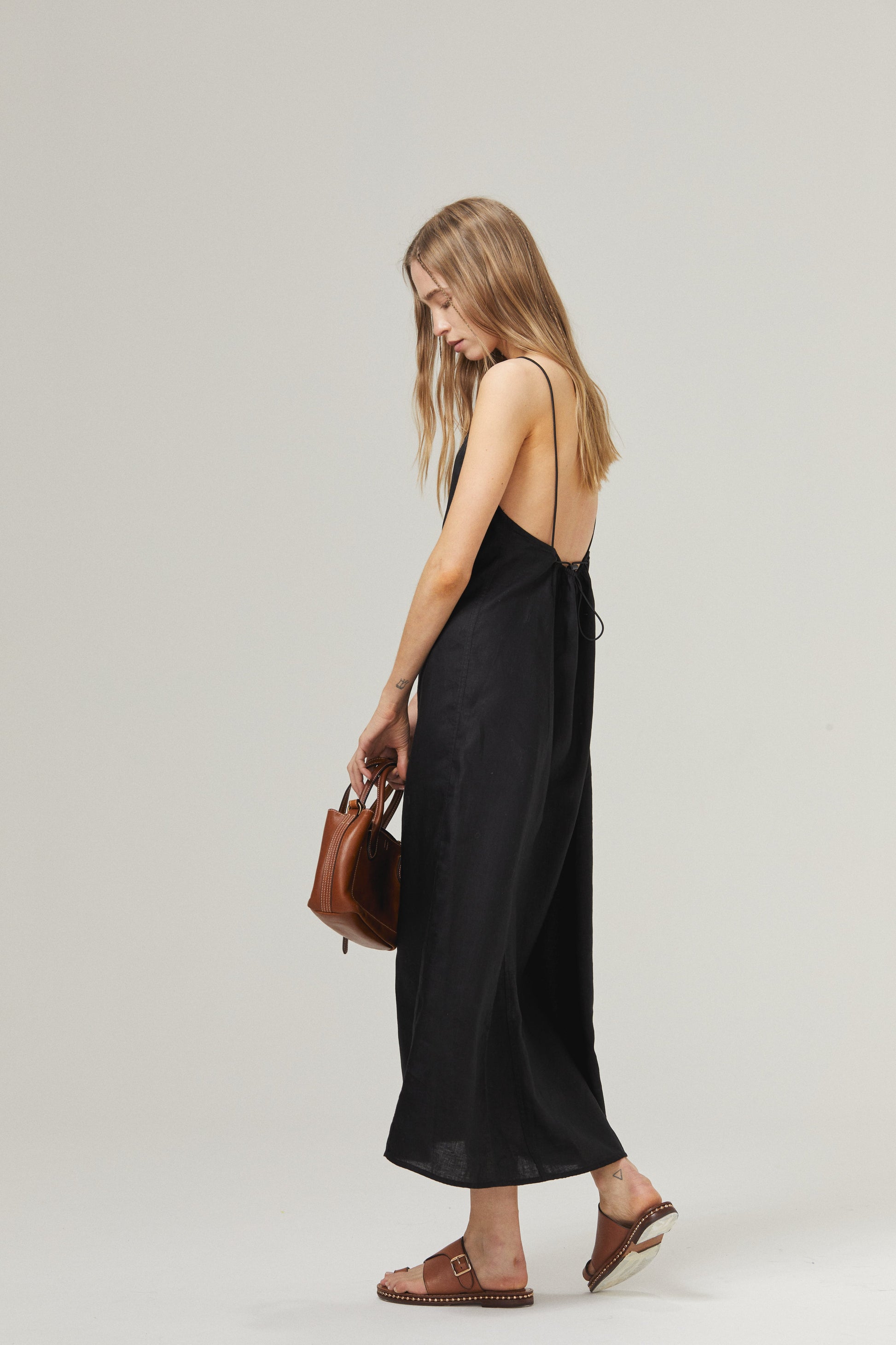 The Sophie Linen Dress is feminine and modern. Crafted from 100% natural linen —pre-washed and softened for a super easy handling— this sleeveless long dress features adjustable elastic spaghetti straps that make it comfortable and elegant. A subtle gathering at the back allows for more movement.