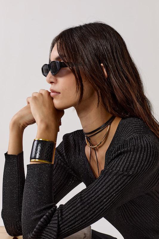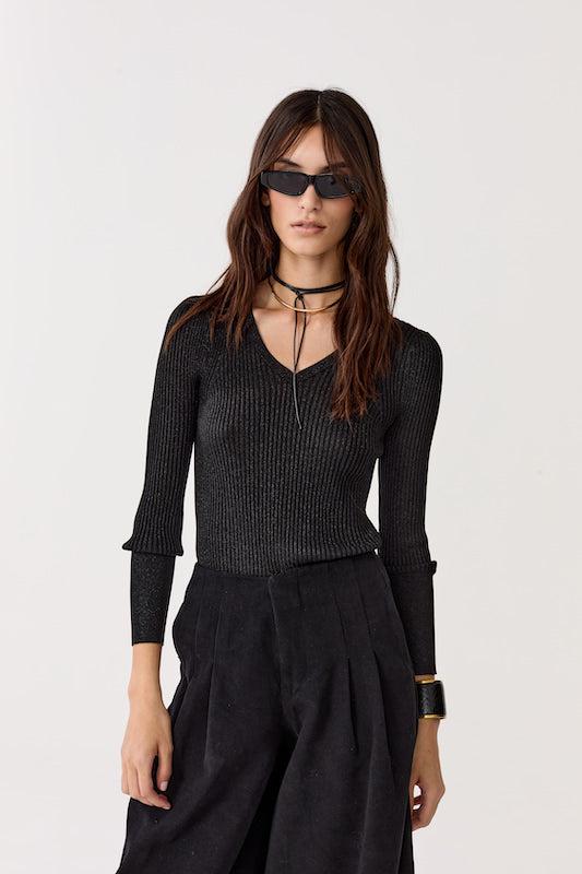 St. Moritz Lurex Knitted Top - Black