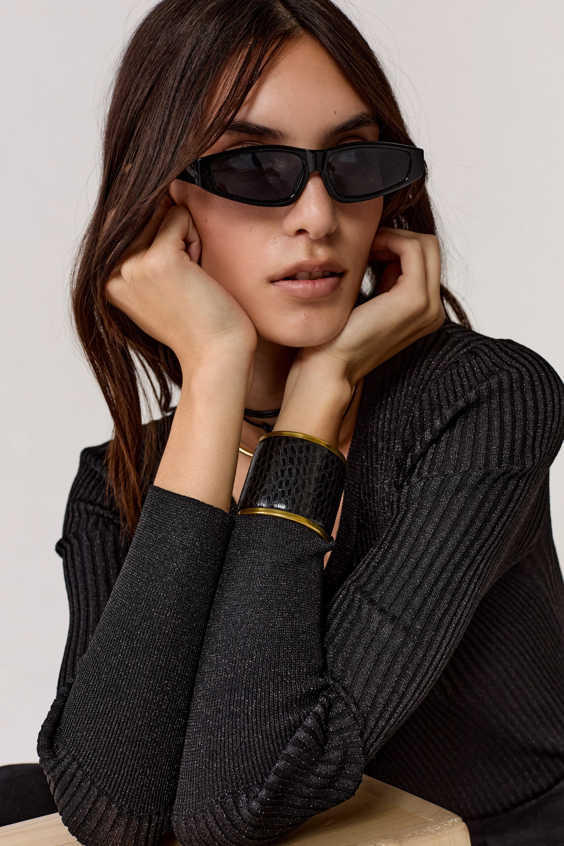 This V-neck top is crafted with a ribbed knit from our favorite lurex thread for a shimmering finish and sculpted fit against the skin. This top is lovely solo and layers beautifully under the Waves silk velvet Vest. This will be your new basic!